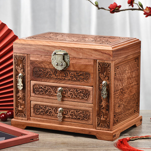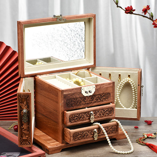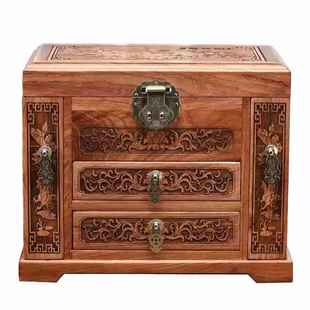 缅甸花梨中式 红木首饰盒复古中国风雕花珠宝收纳盒婚庆结婚送礼品