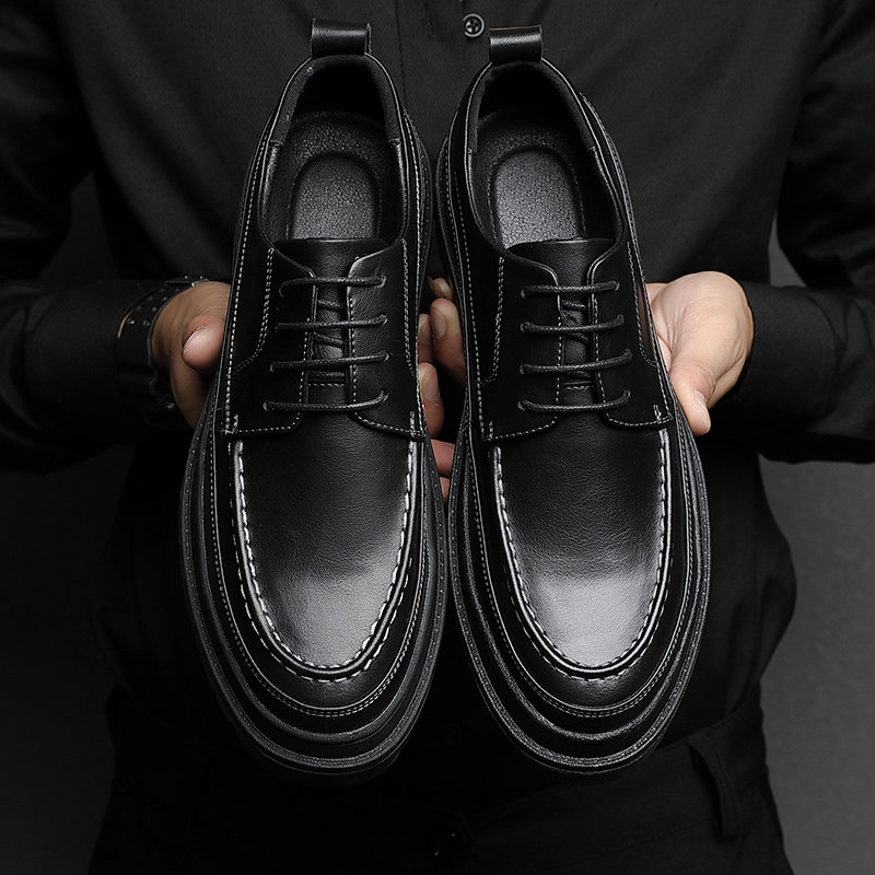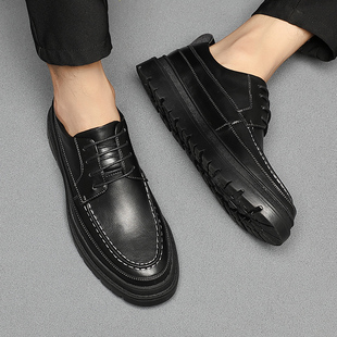 男款 加绒休闲皮鞋 2025新款 子商务男士 黑色软底新郎结婚鞋 回力皮鞋