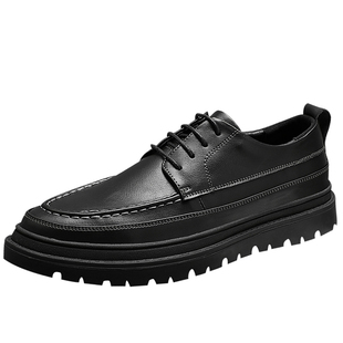 男鞋 皮鞋 新款 子结婚伴郎新郎商务休闲男士 加绒软底黑色鞋 回力皮鞋