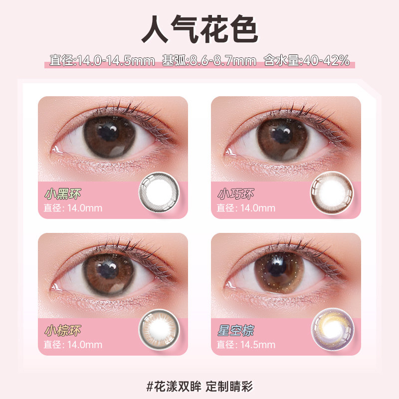 韩国NEO小黑环美瞳女半年抛2片棕环大小直径自然混血隐形眼镜进口