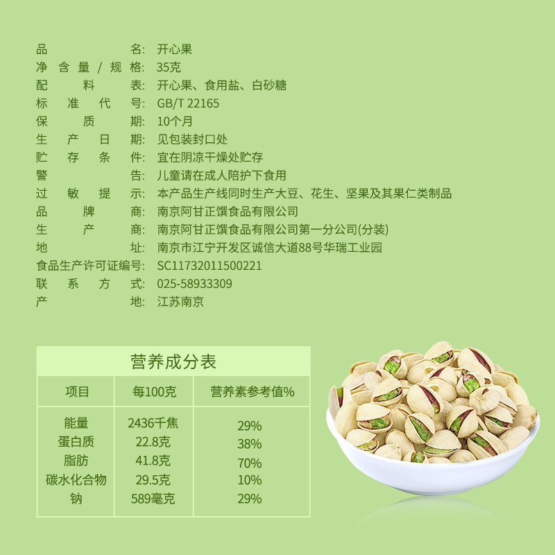 阿甘正馔原味坚果干炒货自然开口开心果小吃包装 5袋 休闲零食35g