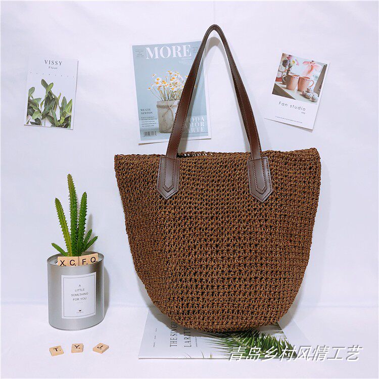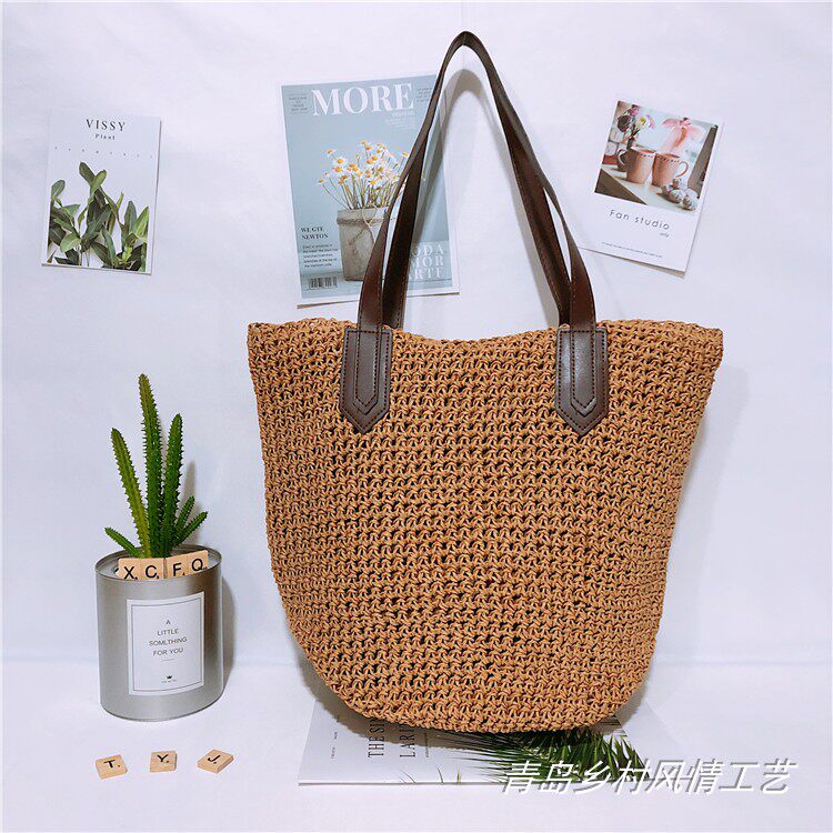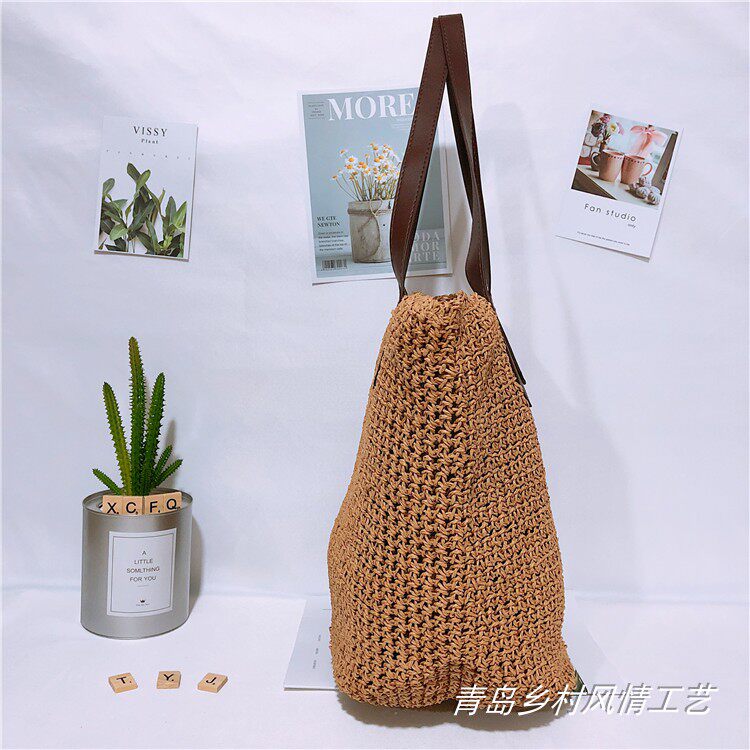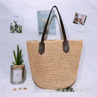 编织包单肩包女包沙滩包欧美风草编包夏季 度假大包乡村风情 新款