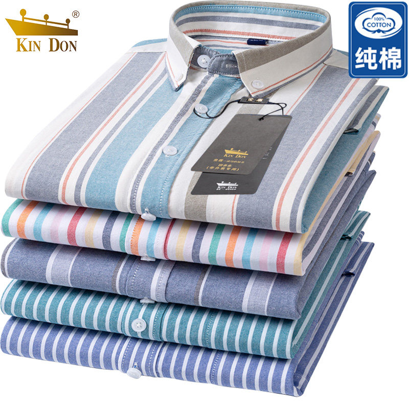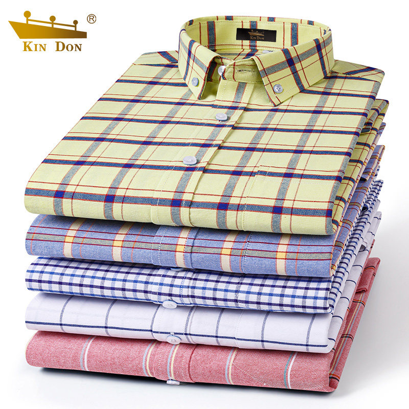 款 金盾纯棉衬衫 春季 长袖 中年爸爸宽松休闲全棉牛津纺格子衬衣 男士