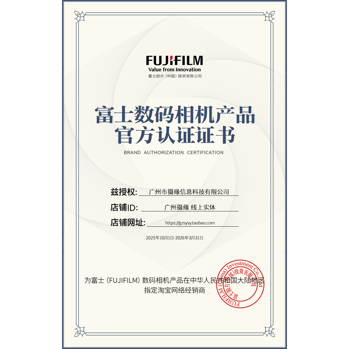 店铺掌柜:  广州摄缘 线上实体