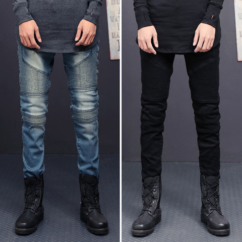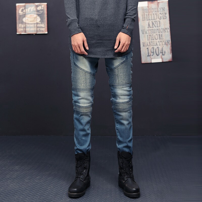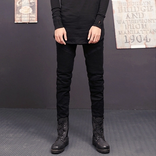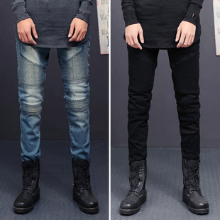 JEANS男士 潮流褶皱小脚裤 弹力修身 机车牛仔裤 裤 欧美高街BIKER
