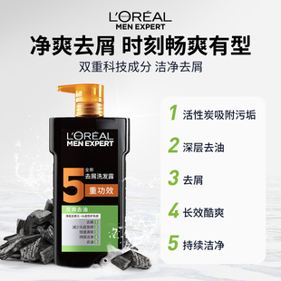欧莱雅男士 炭爽活泉薄荷洗发水去油去屑清爽控油止痒洗发露官方