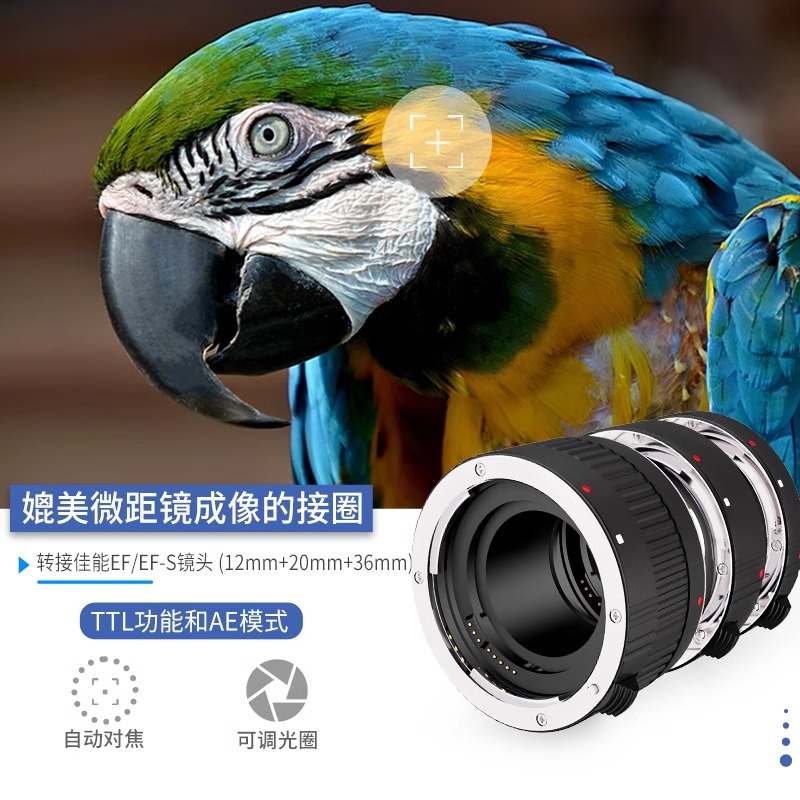 7D2 适用佳能单反相机微距转接环 750D JJC 6D2 80D 5D4 90D EF卡口近摄接圈自动对焦5D3 77D 70D 800D 760D