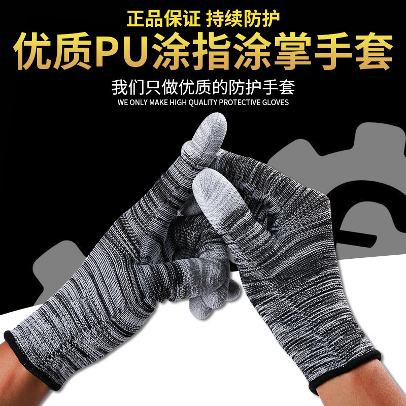 PU涂指涂掌手套劳保耐磨工作防滑尼龙浸涂胶劳动干活薄款 胶皮透气