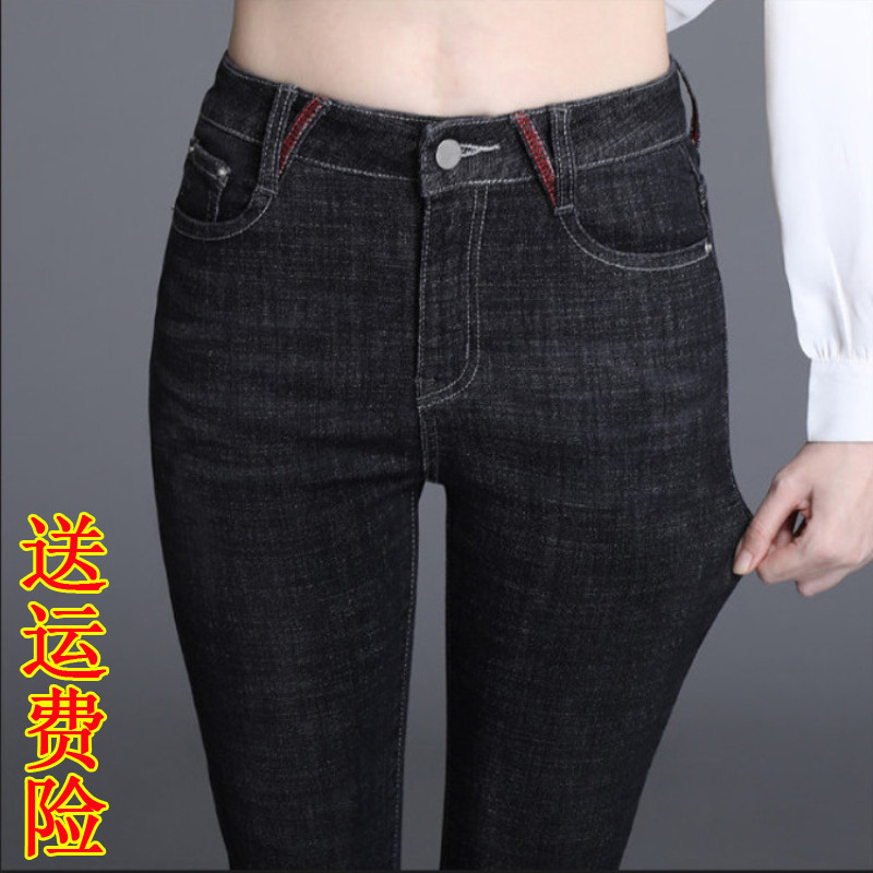 女秋冬加绒胖妹妹mm梨型身材高腰显瘦直筒长裤 美式 复古微喇牛仔裤