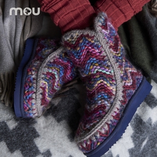 女 mou冬ESKIMO 中筒靴 羊皮毛一体 雪地靴 24波希米亚风格