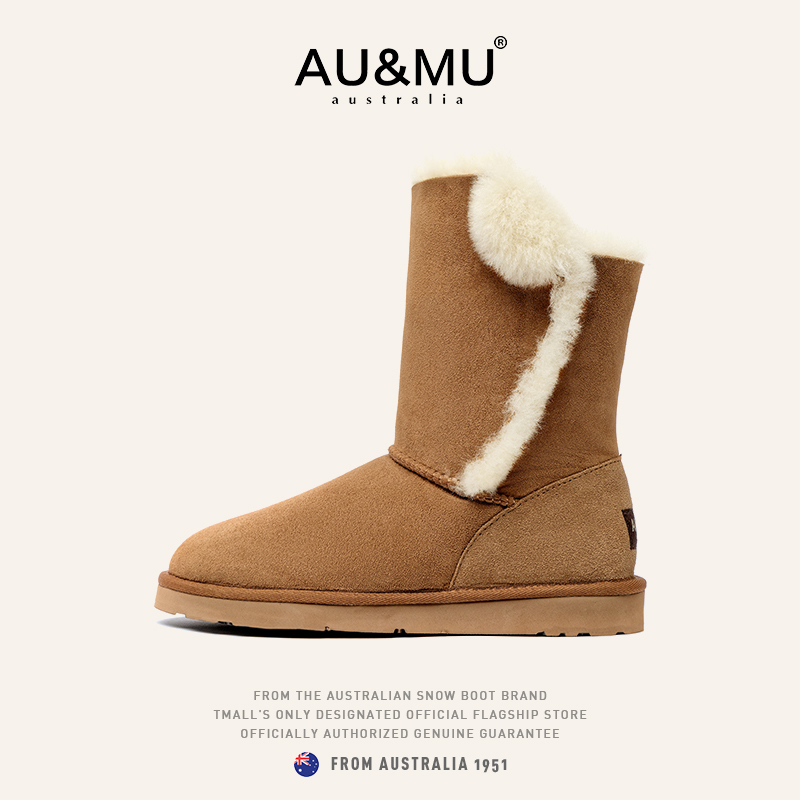 冬季 2025新款 女加厚绒防水防滑 真羊皮毛一体 AUMU澳洲中筒雪地靴