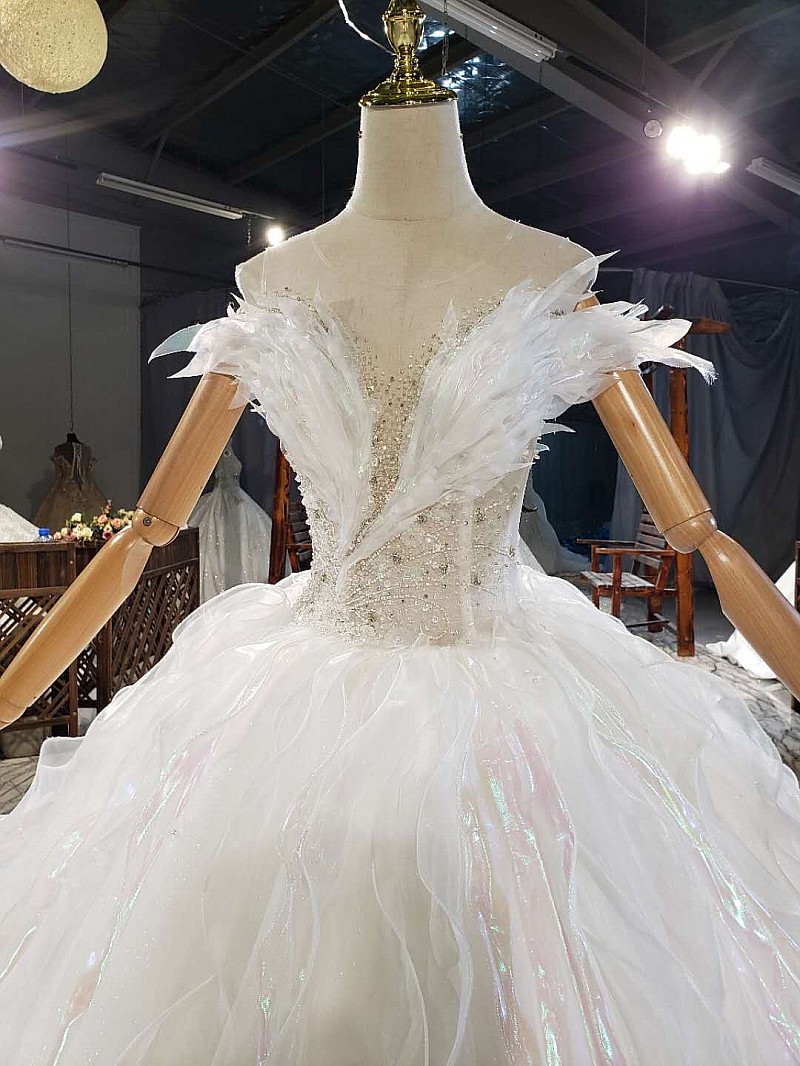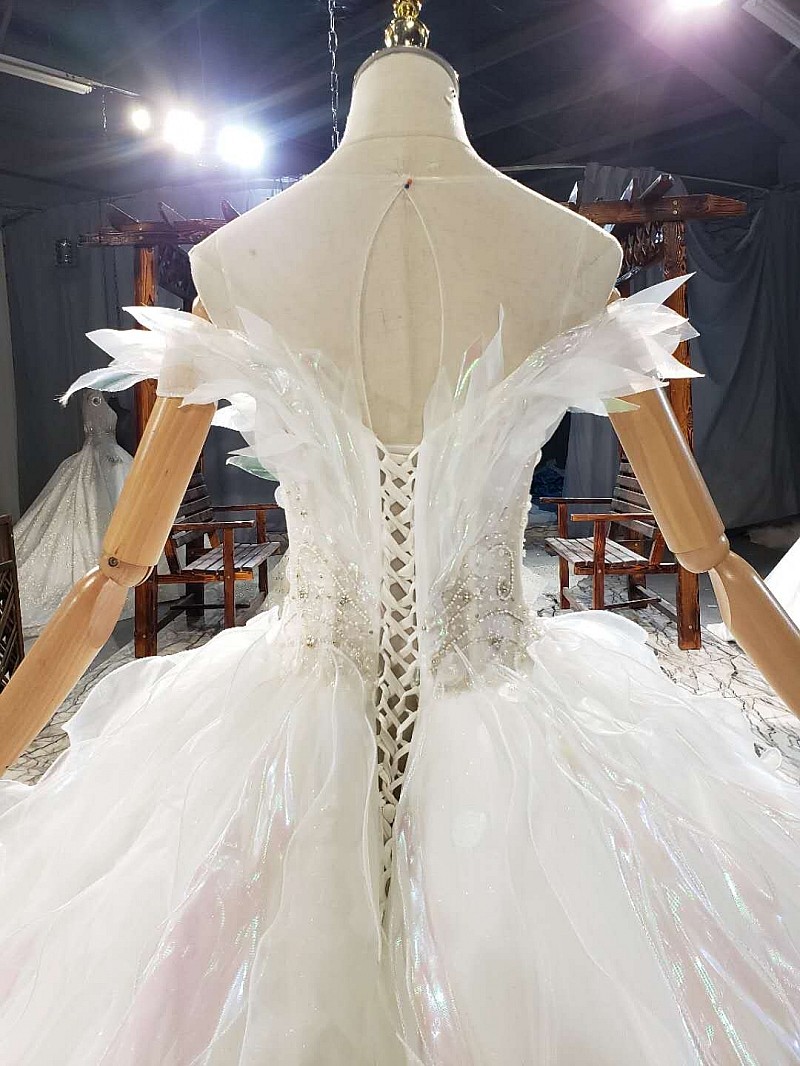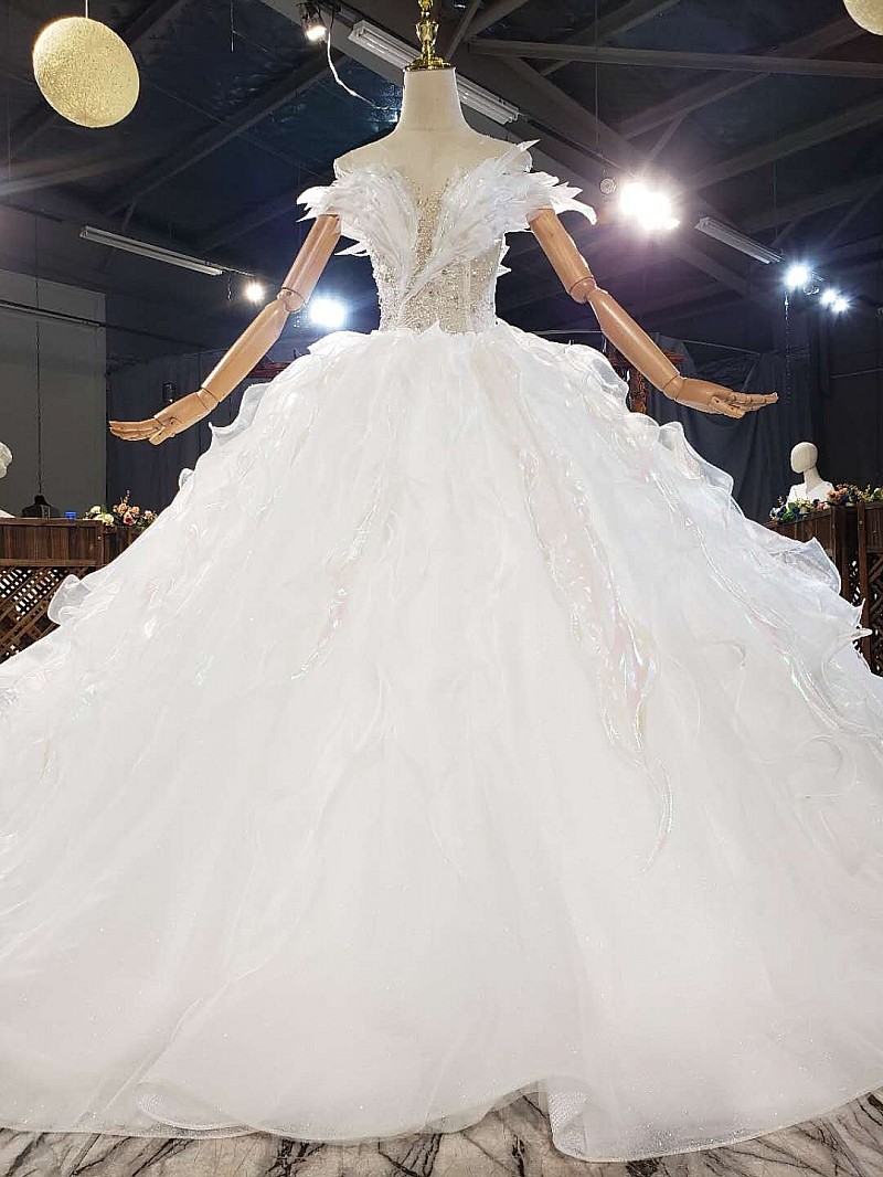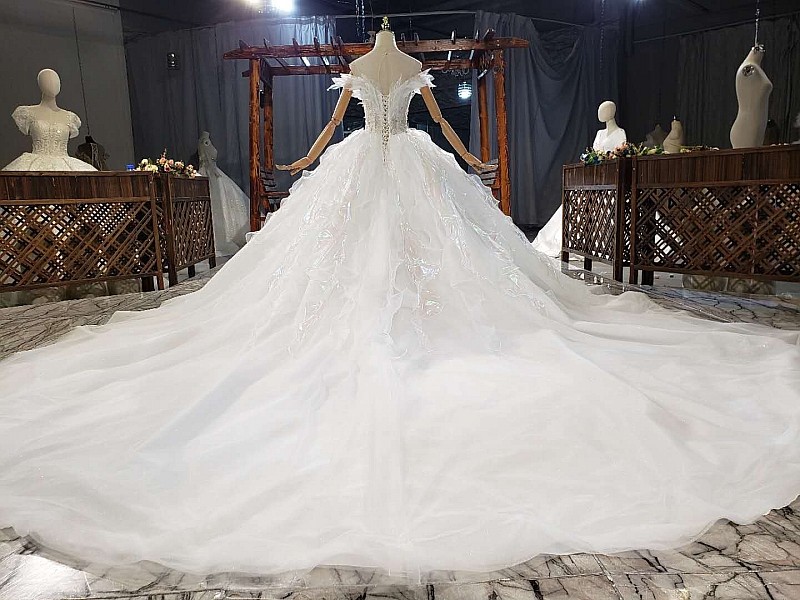 2020新款 大拖尾公主奢华新娘婚纱礼服99843 宫廷抖音网红包肩长袖