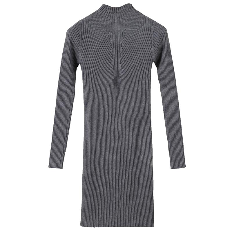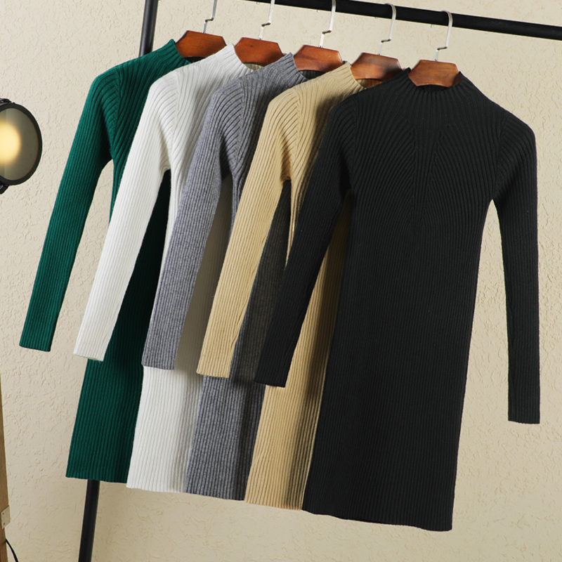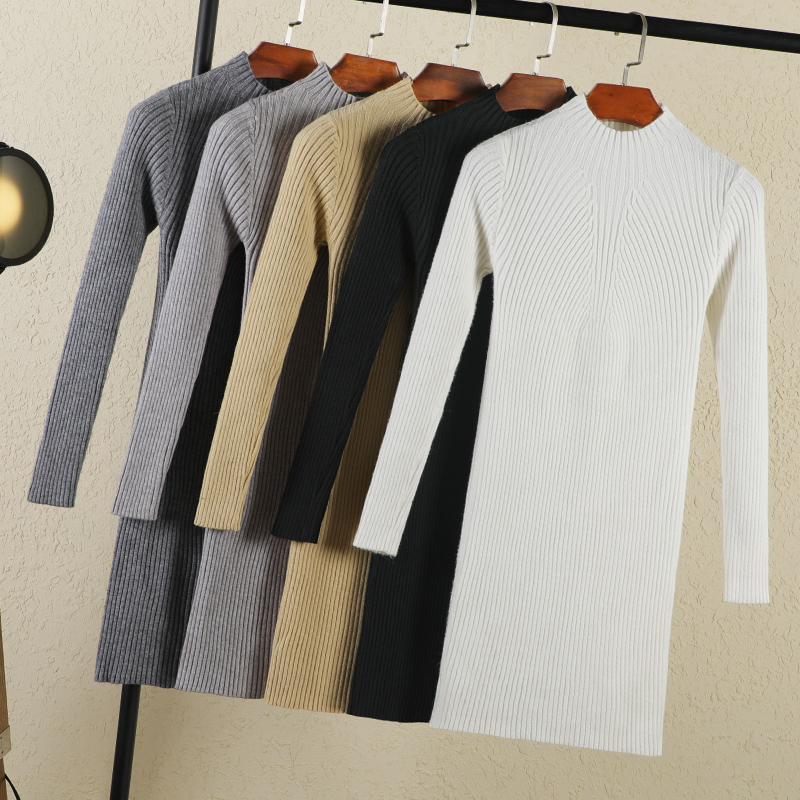 新款 针织连衣裙中长款 打底加厚女装 内搭秋冬季 长裙 女士毛衣裙长袖