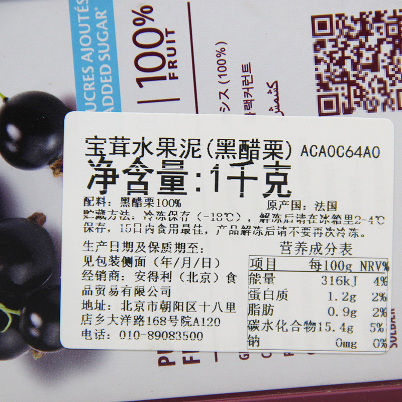法国进口宝茸黑加仑果泥果溶1kgBoiron黑醋栗果茸水果酱甜品烘焙