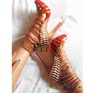 夜店凉靴黑色 2020真皮女鞋 舞台鞋 超高跟拼色走秀鞋 蓝色细带 凉鞋