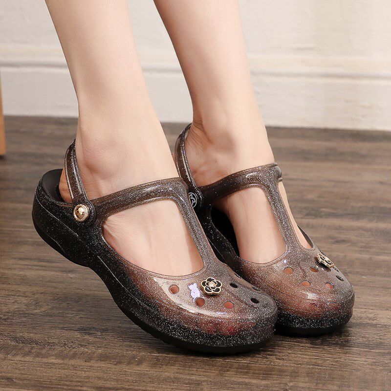 坡跟凉拖鞋 VEBLEN洞洞鞋 软底学生果冻拖鞋 防滑沙滩鞋 外穿 女夏时尚