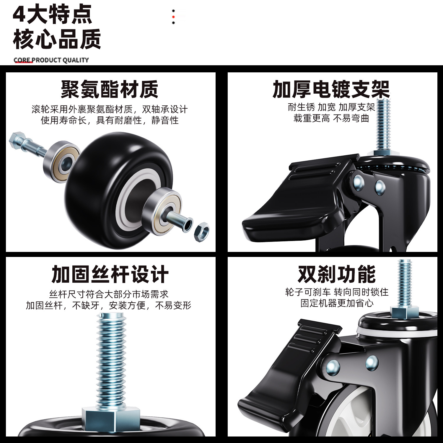 万向轮脚轮1.5寸2寸M8M10M12丝杆双轴承万向轮刹车轮静音脚轮轱辘