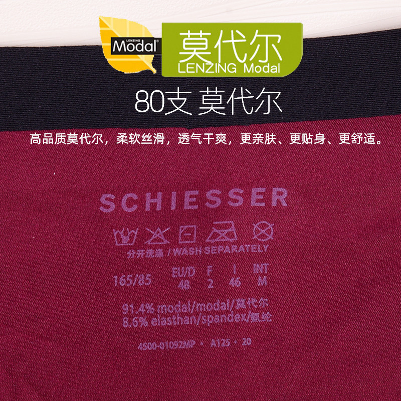 16467T超细莫代尔80S柔软透气无痕平角短裤 2条装 男士 德国舒雅内裤