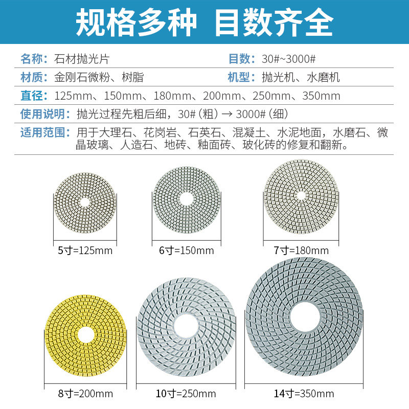 5寸6寸7寸8寸水磨片石材抛光片地坪翻新片125mm150mm180mm200mm