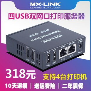 复合 LINK打印机服务器可接4台打印机网络共享器跨网段兼容针式