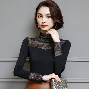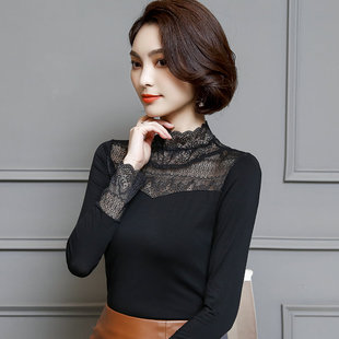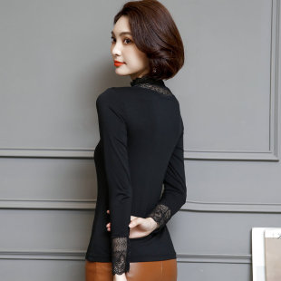 新款 薄小衫 黑色蕾丝t恤女长袖 修身 百搭上衣 莫代尔打底衫 2026春季