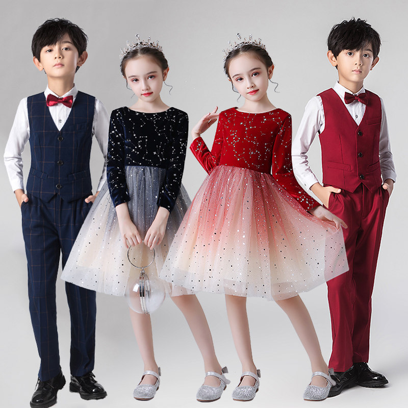 儿童西装 秋冬英伦男童主持人礼服钢琴演出服男孩花童西服外套 套装
