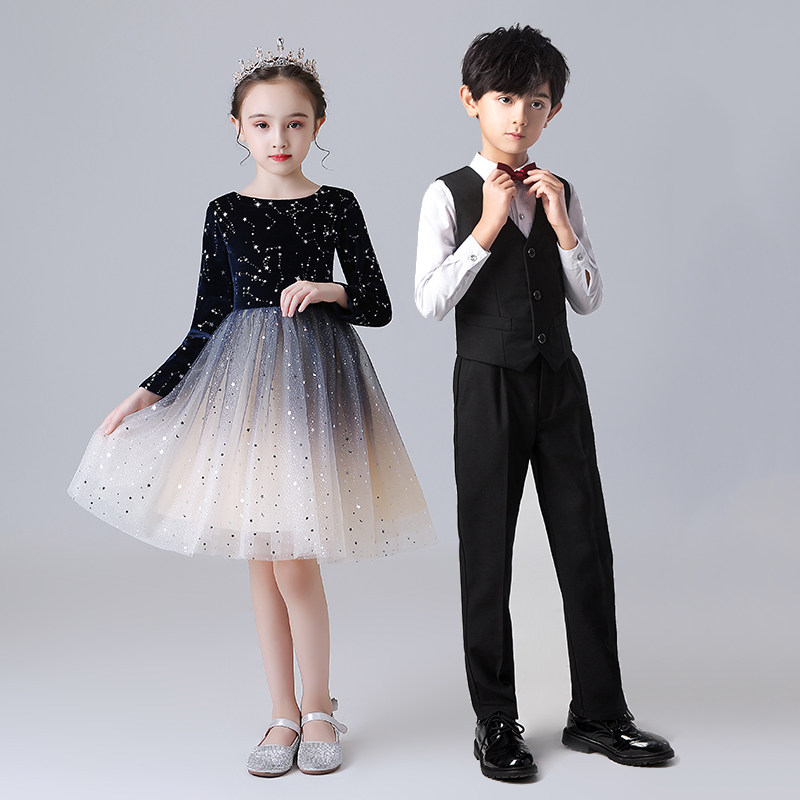 儿童小西装 藏青色亮片男童小主持人英伦风男孩钢琴演出服 套装