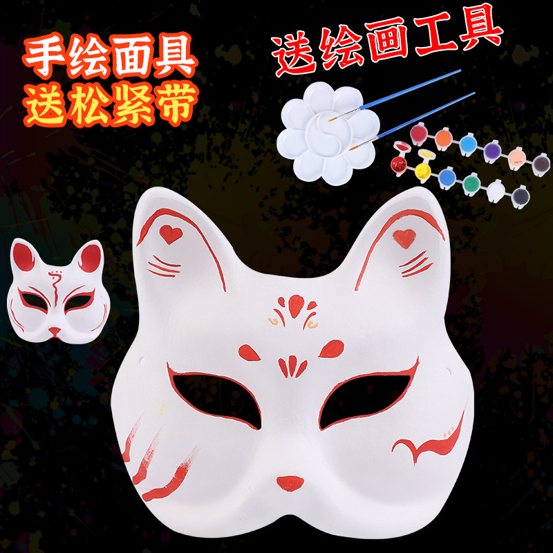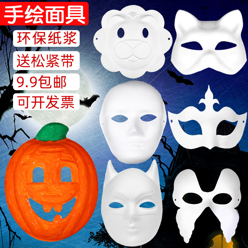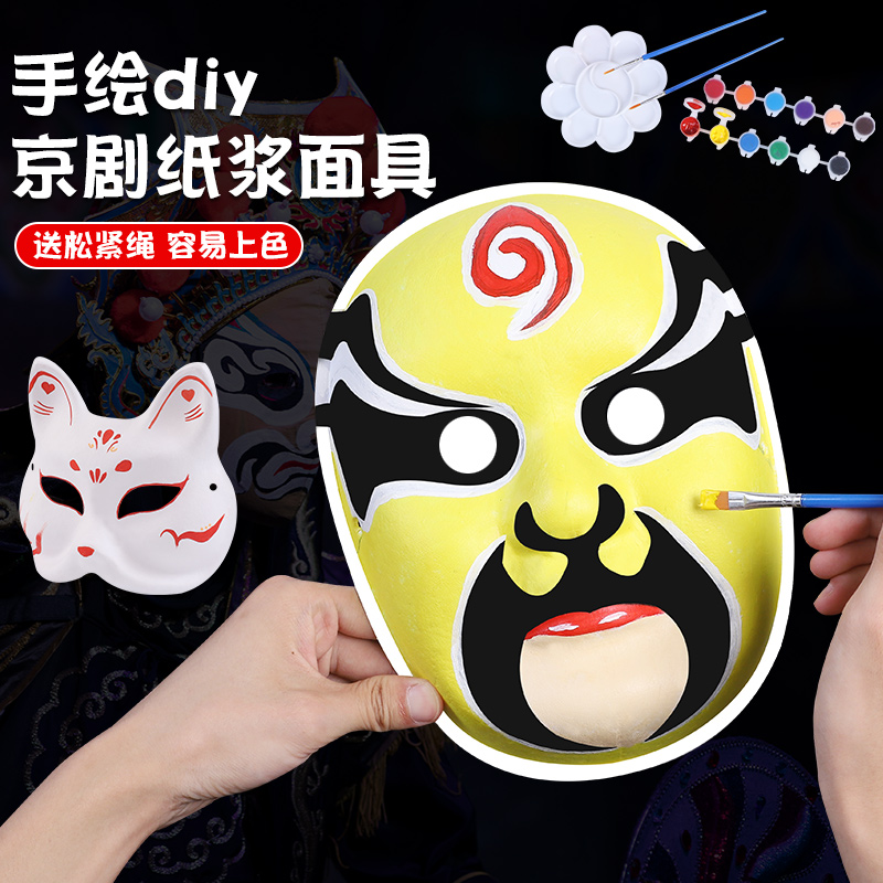 万圣节面具手绘纸浆京剧脸谱绘画幼儿园手工儿童diy空白马勺材料
