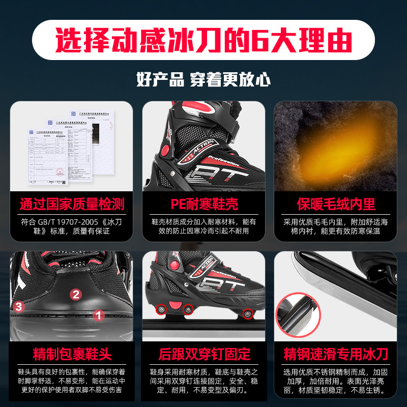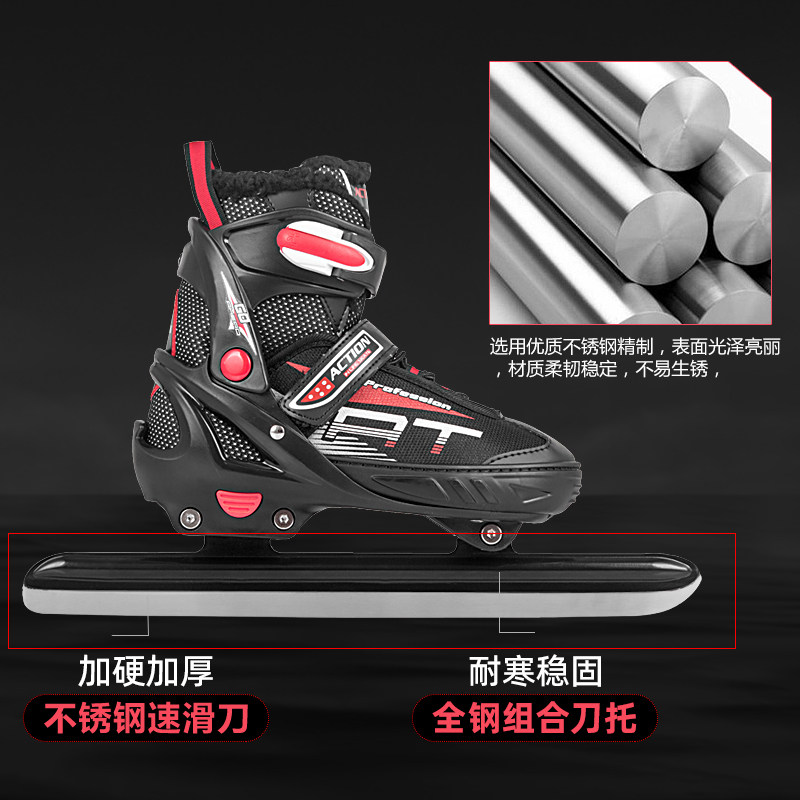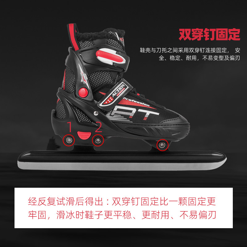 毛绒保暖初学真冰男女 速滑刀成人专业滑冰鞋 动感冰刀鞋 儿童可调码