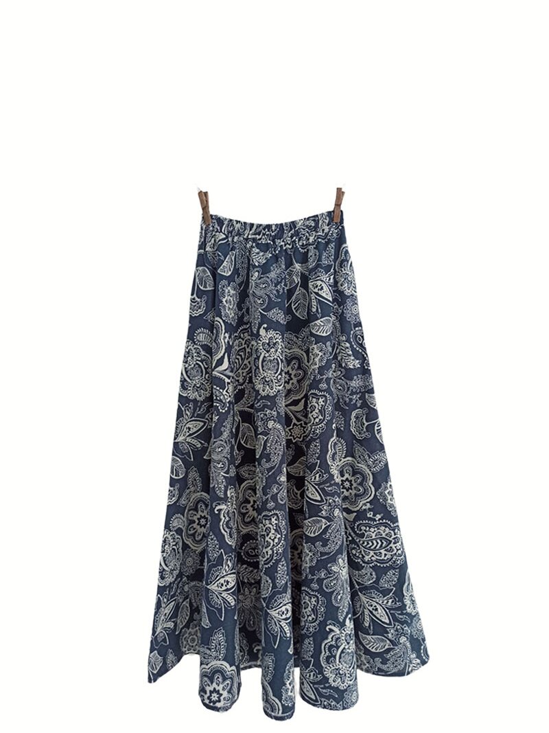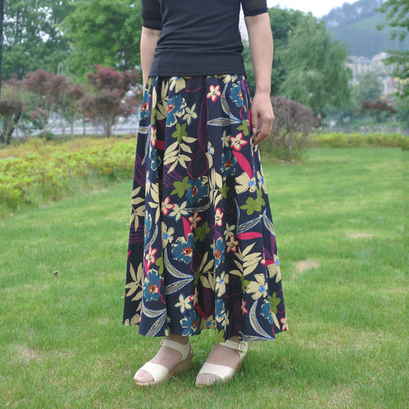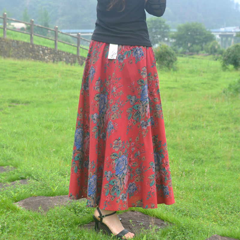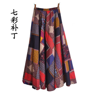 感恩街8号春夏正品 波西米亚印花亚棉麻大摆半身裙优雅沙滩裙 女装