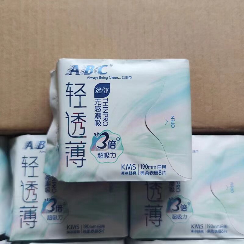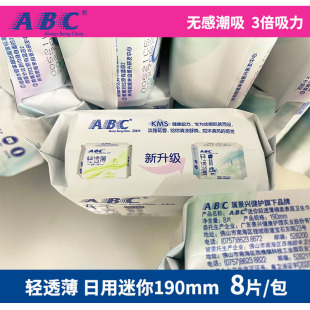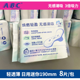 abc卫生巾日用迷你巾亲柔立围棉柔表层超极薄K53清爽凉快8片190mm