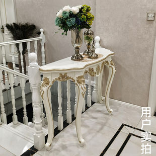 欧式 饰进门入户走廊窄 玄关桌门厅奢华墙边柜靠墙半圆端景台隔断装