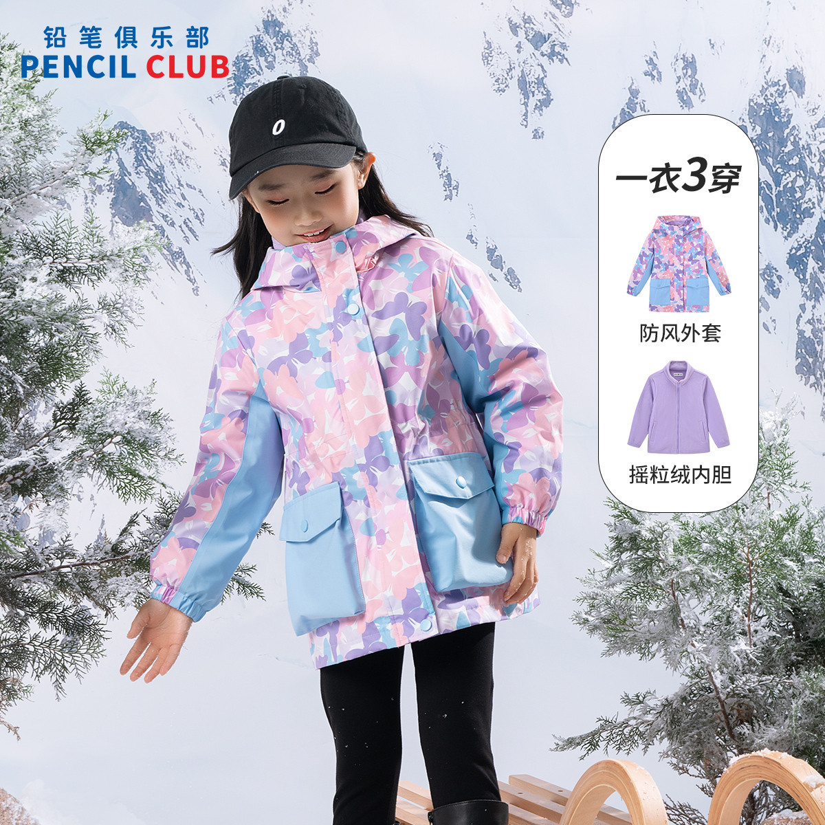 铅笔俱乐部2025年冬装 清仓女童外套中大童防风两件套上衣一衣多穿