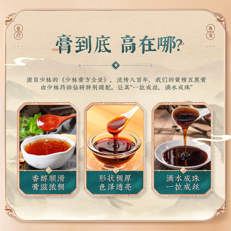 少林黄精五黑膏滋养头发白头发内调转黑发强韧发根护发养发