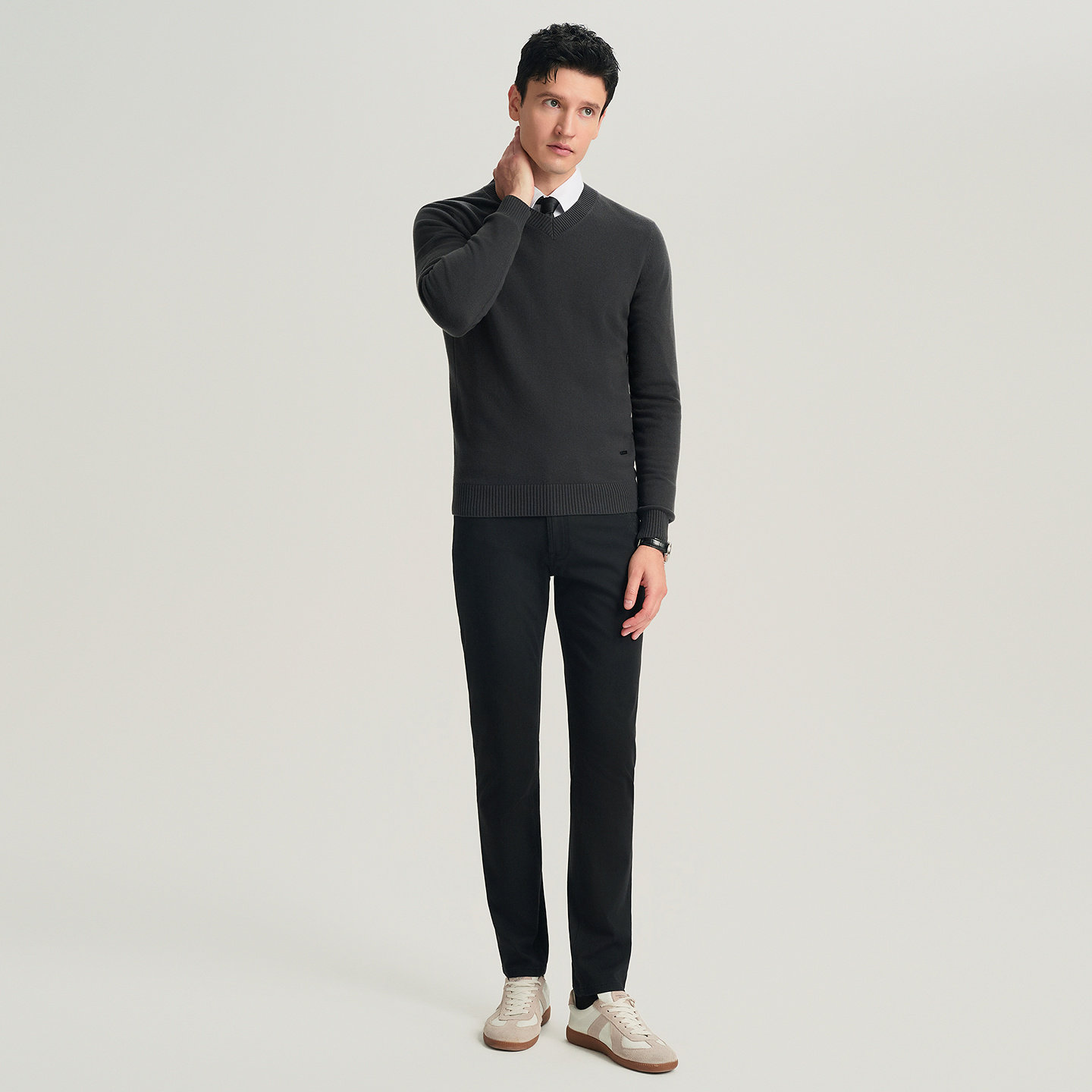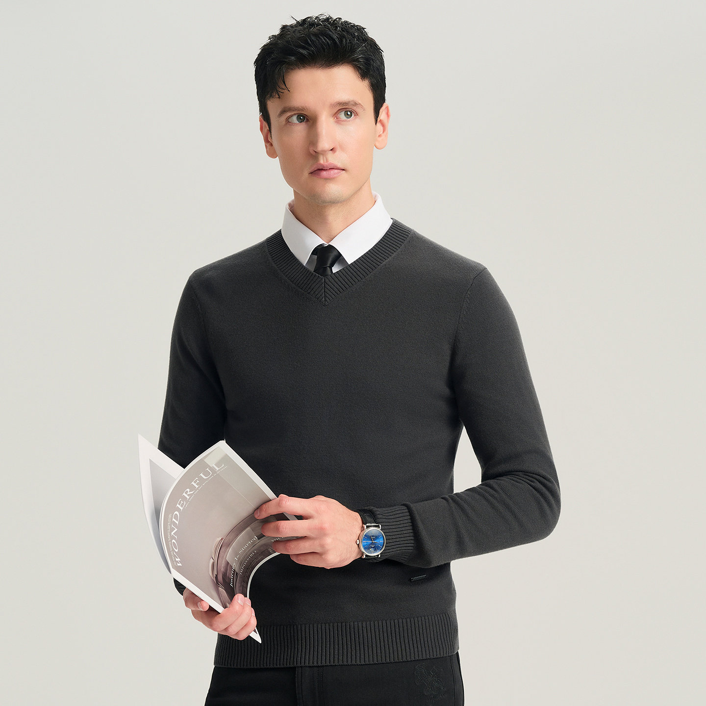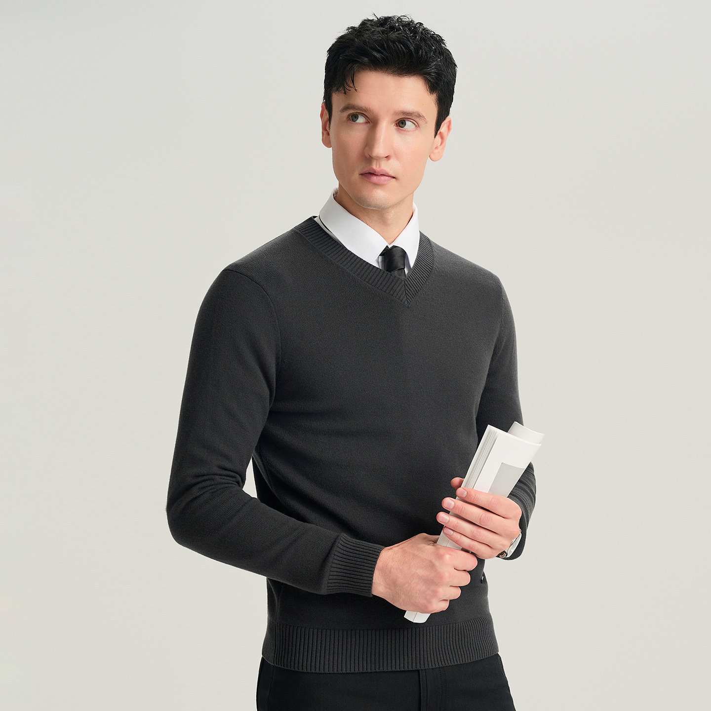 25年秋冬日常休闲内搭针织衫 jodoll乔顿V领灰毛衣商务男士 羊毛衫