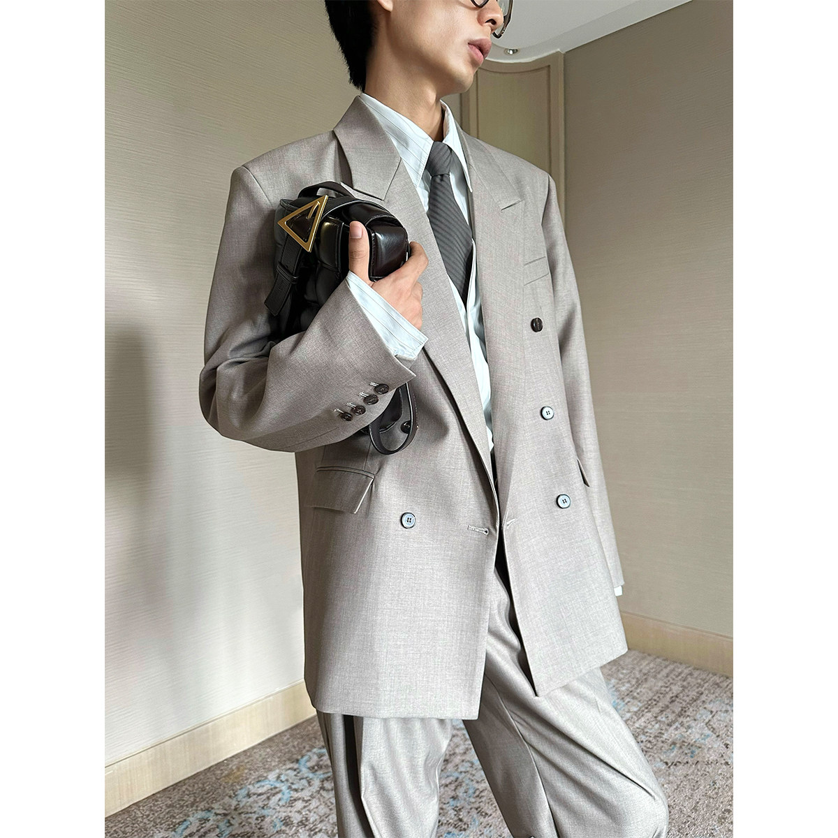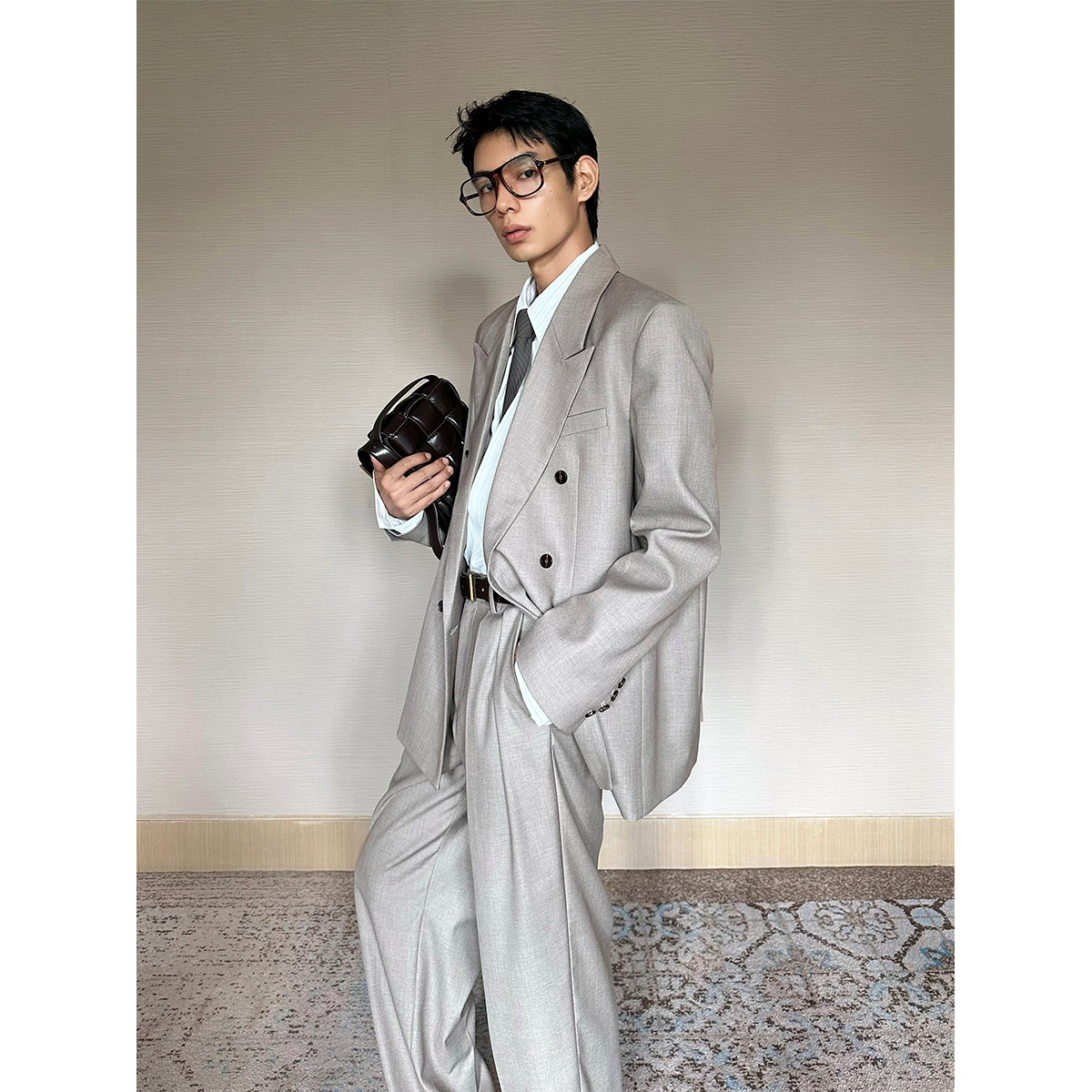男冬季 新款 毛呢西装 垂感长裤 重磅单褶羊毛休闲西裤 裤 子 储格