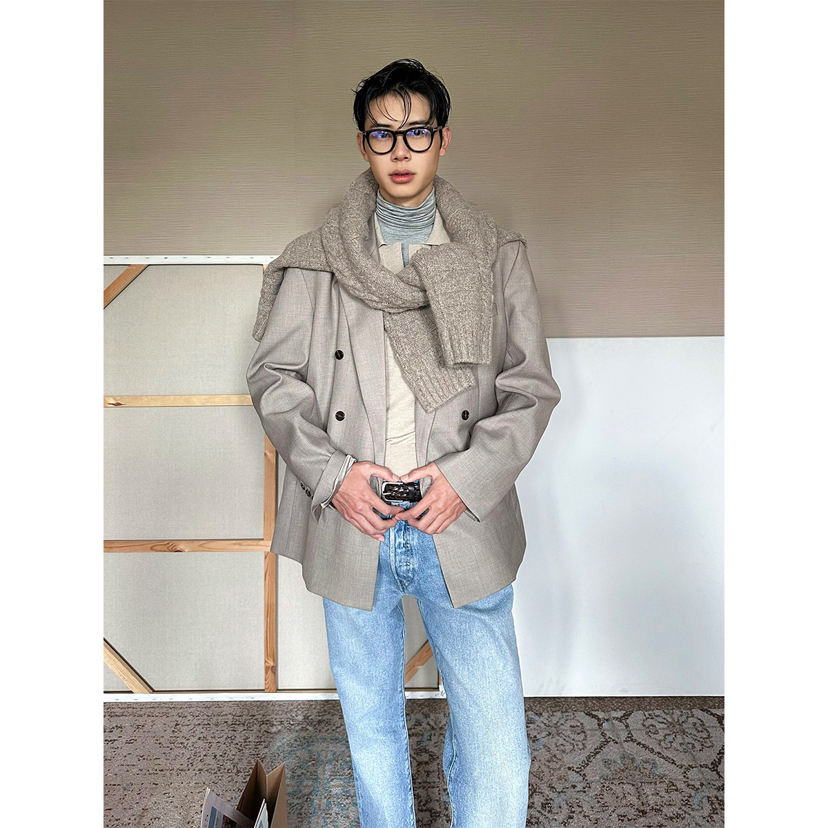 休闲外套韩版 短款 套装 西装 英伦风高级感呢子西服 毛呢夹克大衣男士