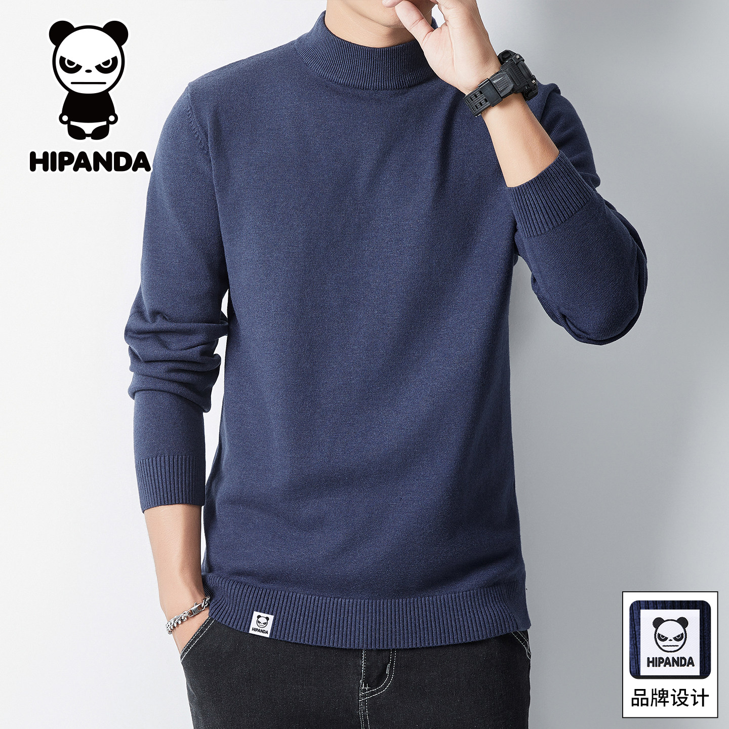 2025秋冬新半高领保暖菱格纹毛衣男 纯羊毛针织衫 HLA 海澜之家修身