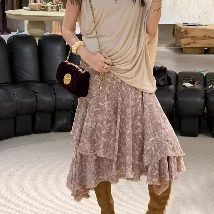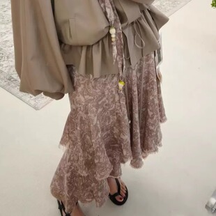25ss腰果花双层半裙不规则裙摆毛边百搭长裙 本 花一 上海高版