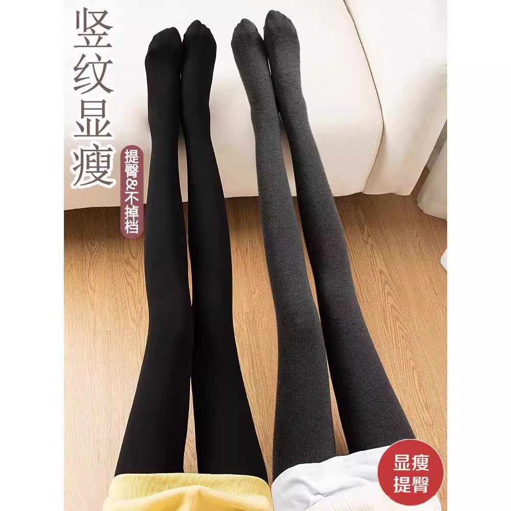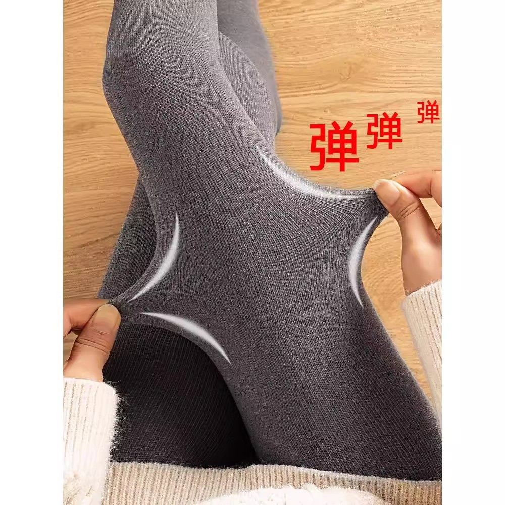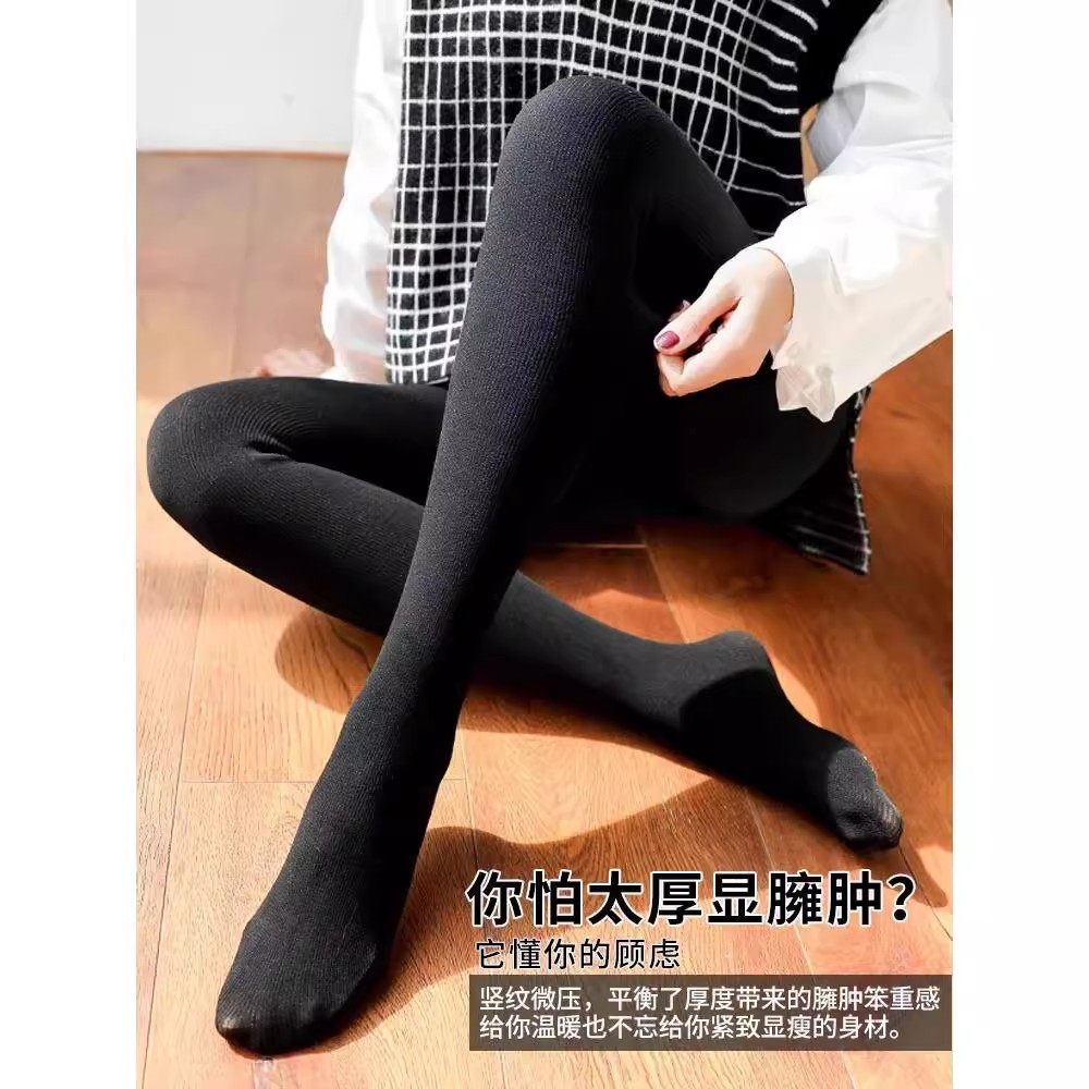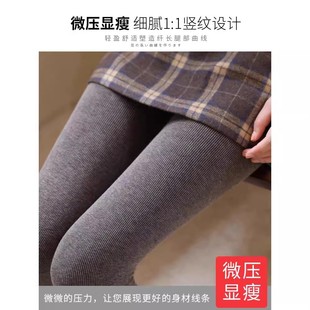 袜百搭加绒保暖秋裤 螺纹竖条紧身显瘦黑色连裤 外穿秋冬季 打底裤