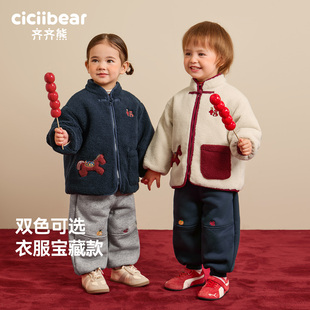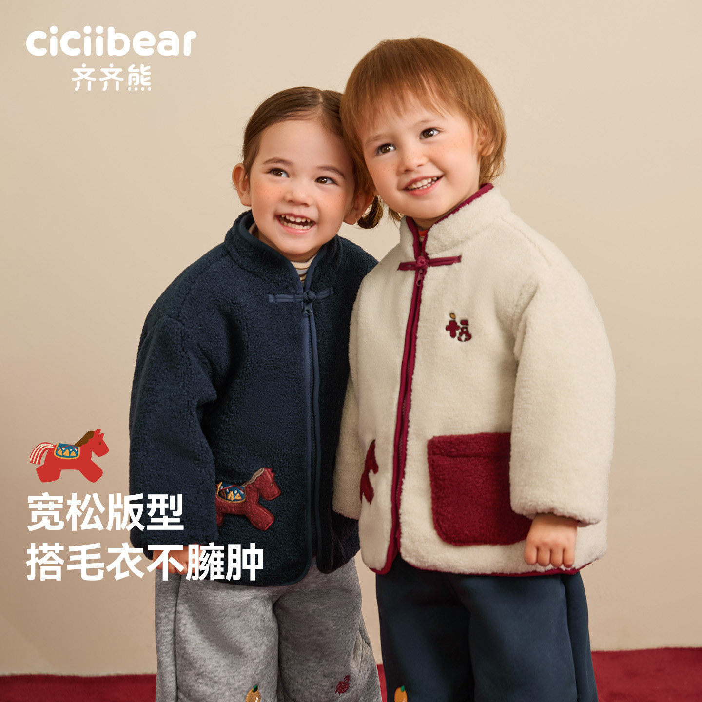 齐齐熊宝宝夹棉外套男女童冬儿童棉服拜年服 骏马福裳400g羊羔绒