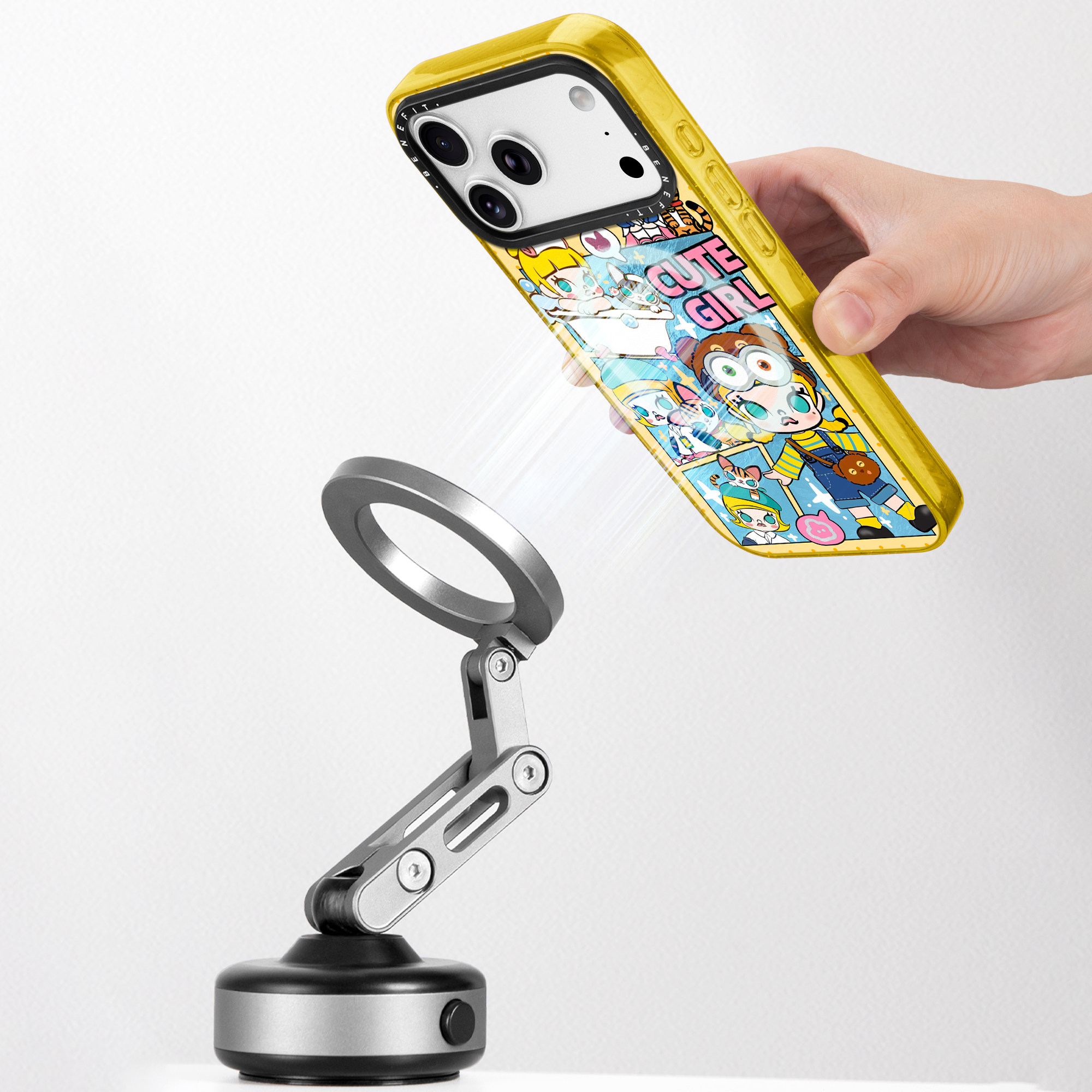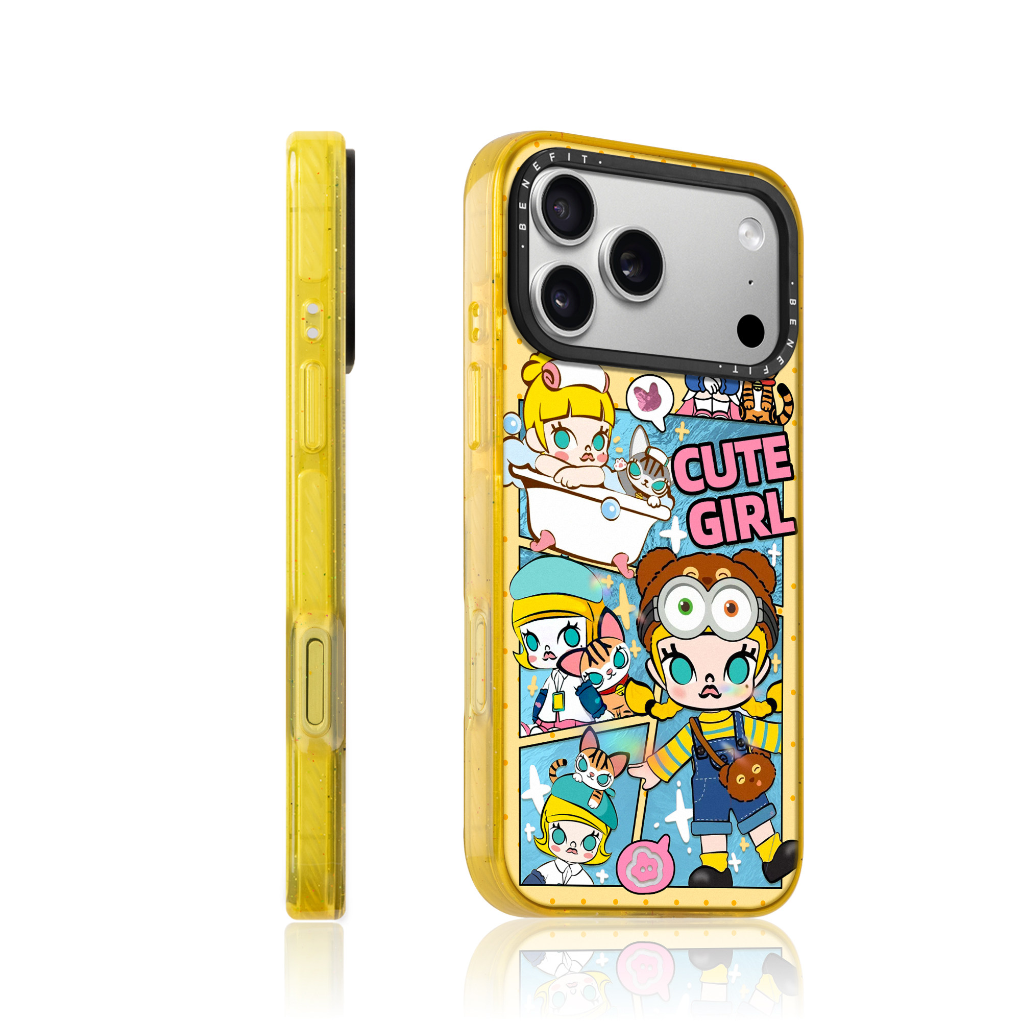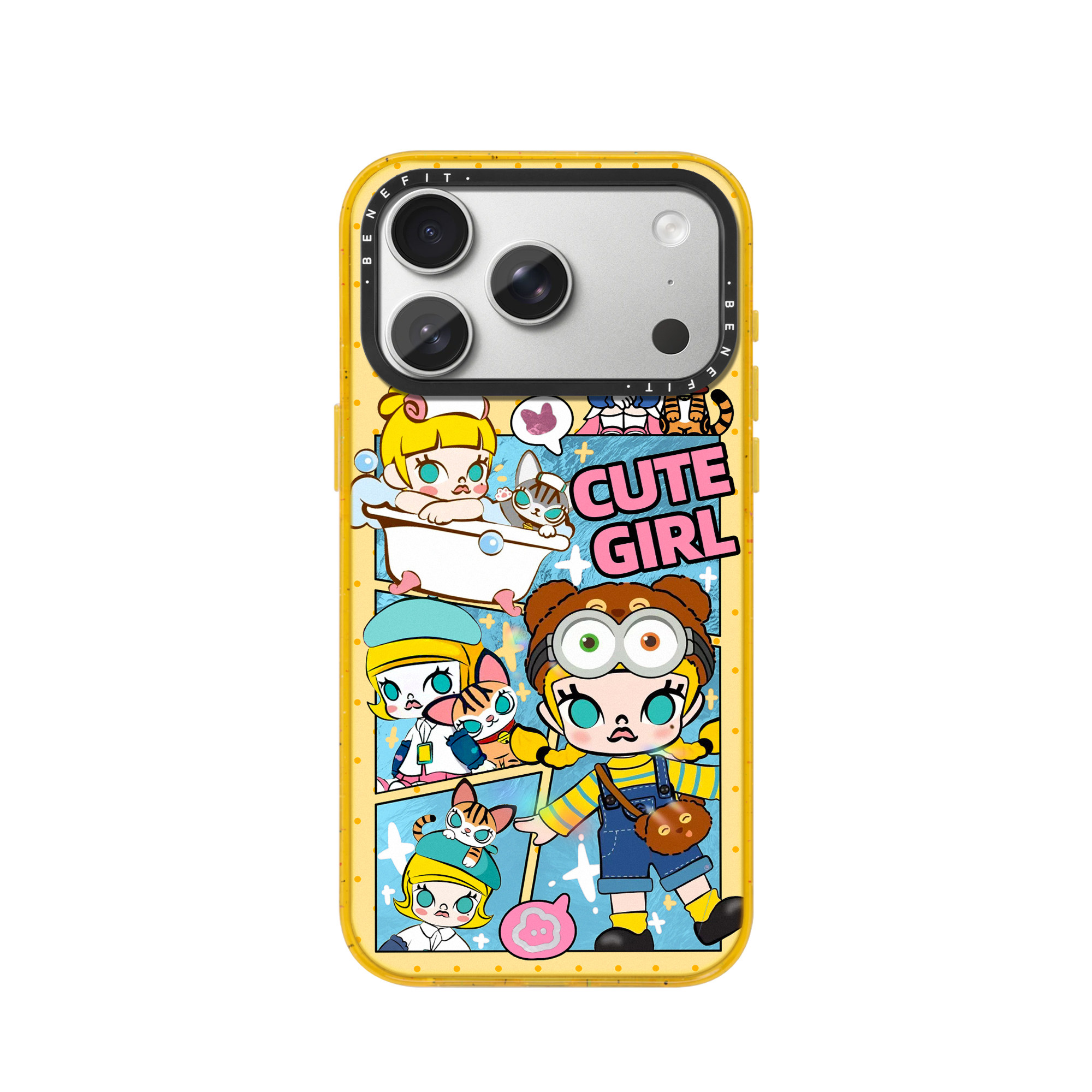 benefit时尚 13套14冰川纹12防摔彩色边框 拼接猫猫与女孩适用于iphone17promax苹果16PRO晶盾磁吸手机壳15新款