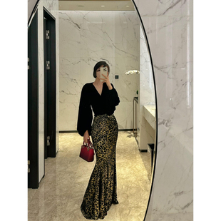 2025秋冬新款 短裙A字百搭亮闪闪显瘦韩系高级感拼色亮片半身裙女