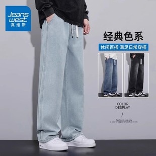 加绒牛仔裤 子男款 男士 直筒2025高街宽松阔腿长裤 秋冬季 真维斯美式