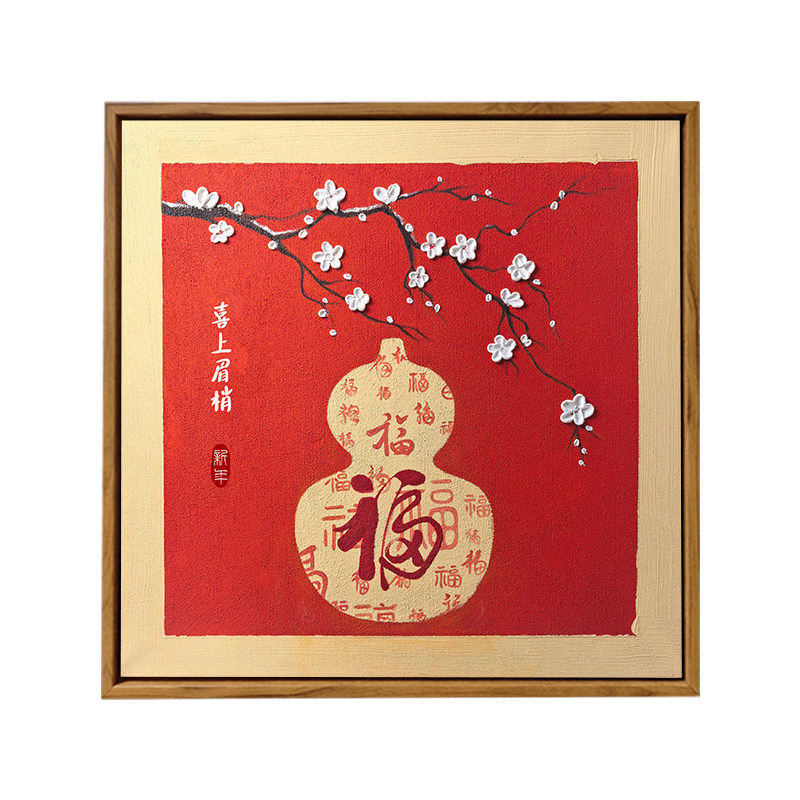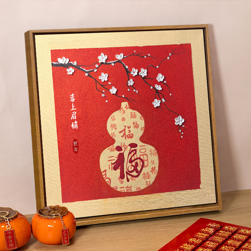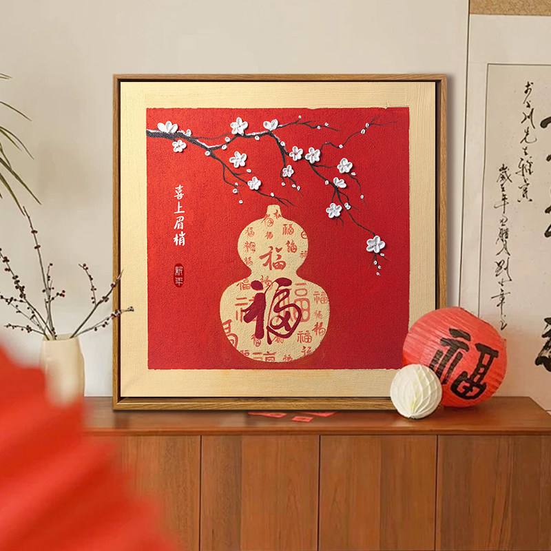 新中式 梅花福禄石英砂肌理画DIY材料包全套手工平安喜乐数字油画