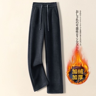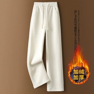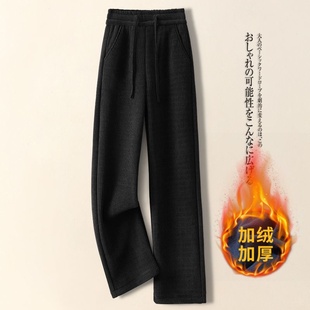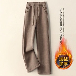 垂感韩版 秋冬加绒显瘦百搭欧棉绒休闲直筒长裤 阔腿女2025新款 窄版