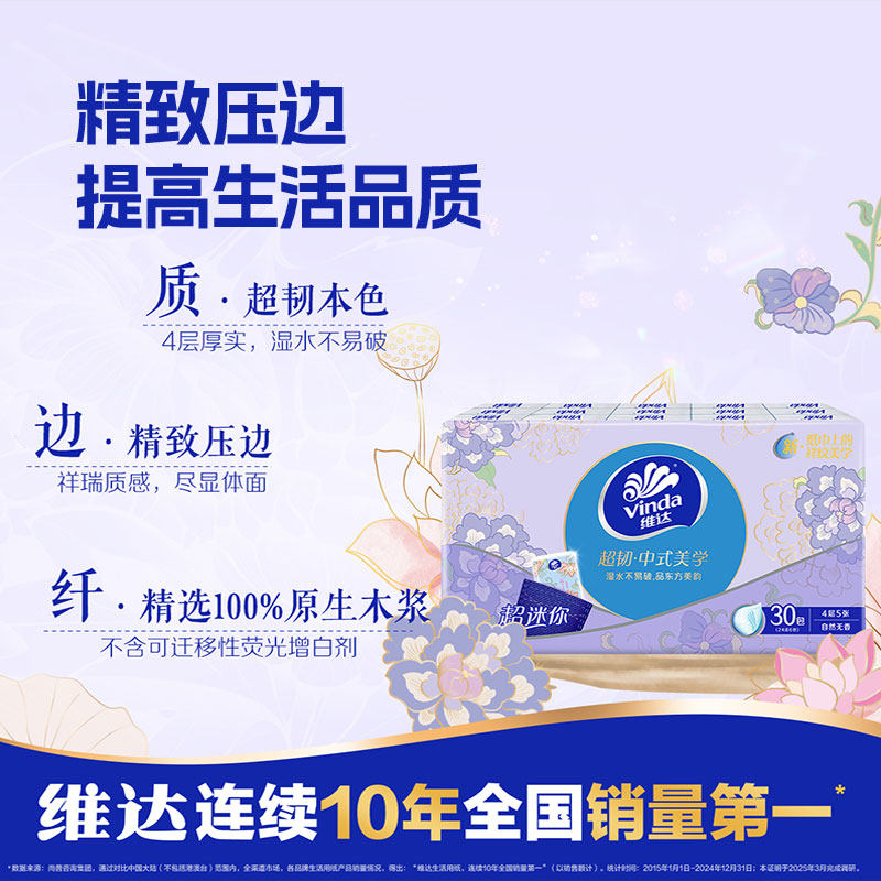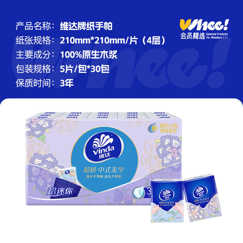 美学超韧手帕纸4层5张30包 维达中式 芭芭农场