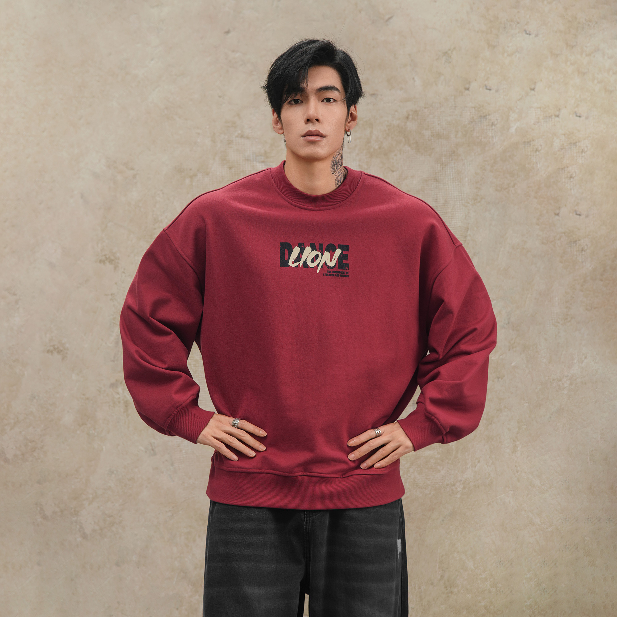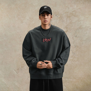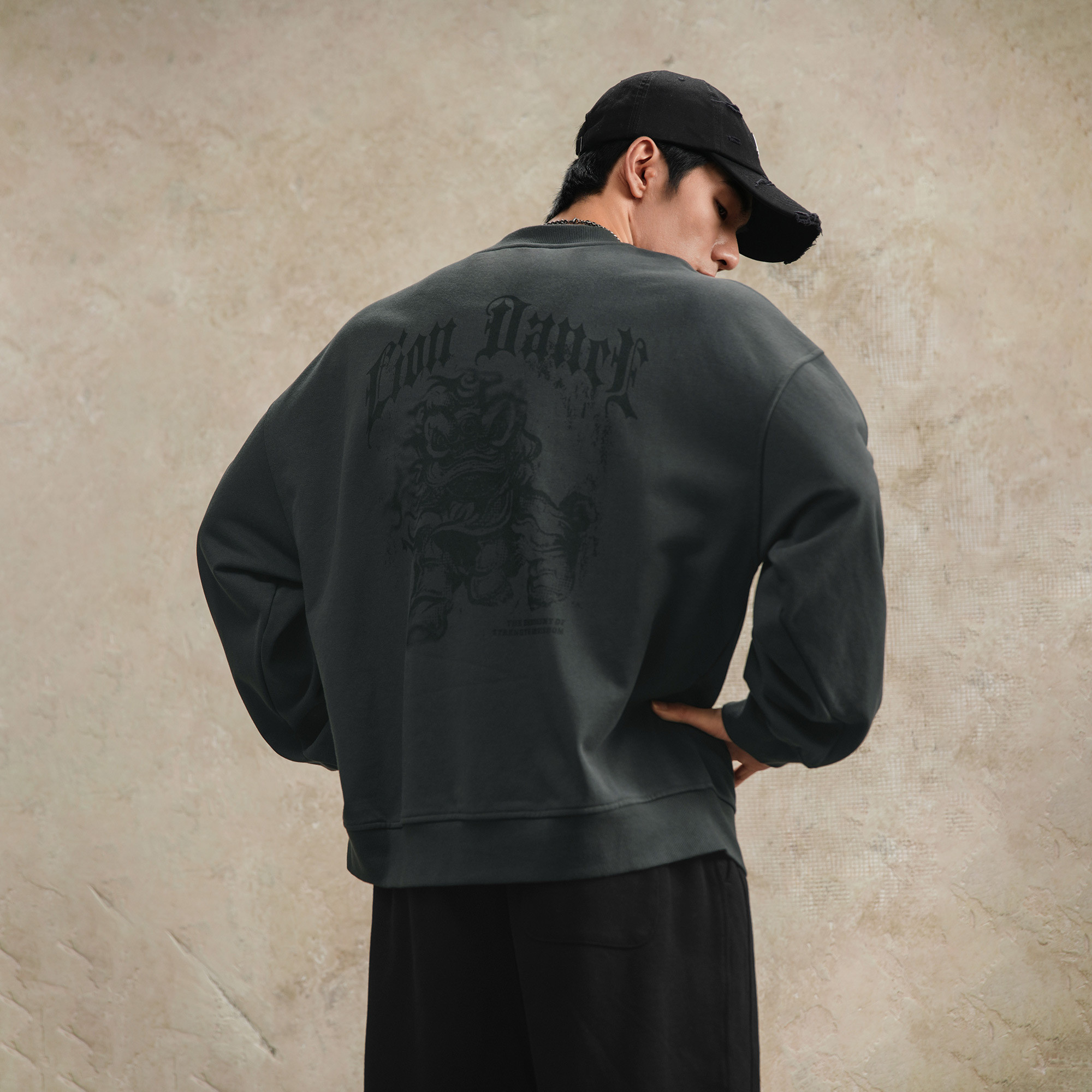 男 潮原创设计感厚款 鹿家门醒狮印花套头卫衣2025秋冬新款 圆领长袖
