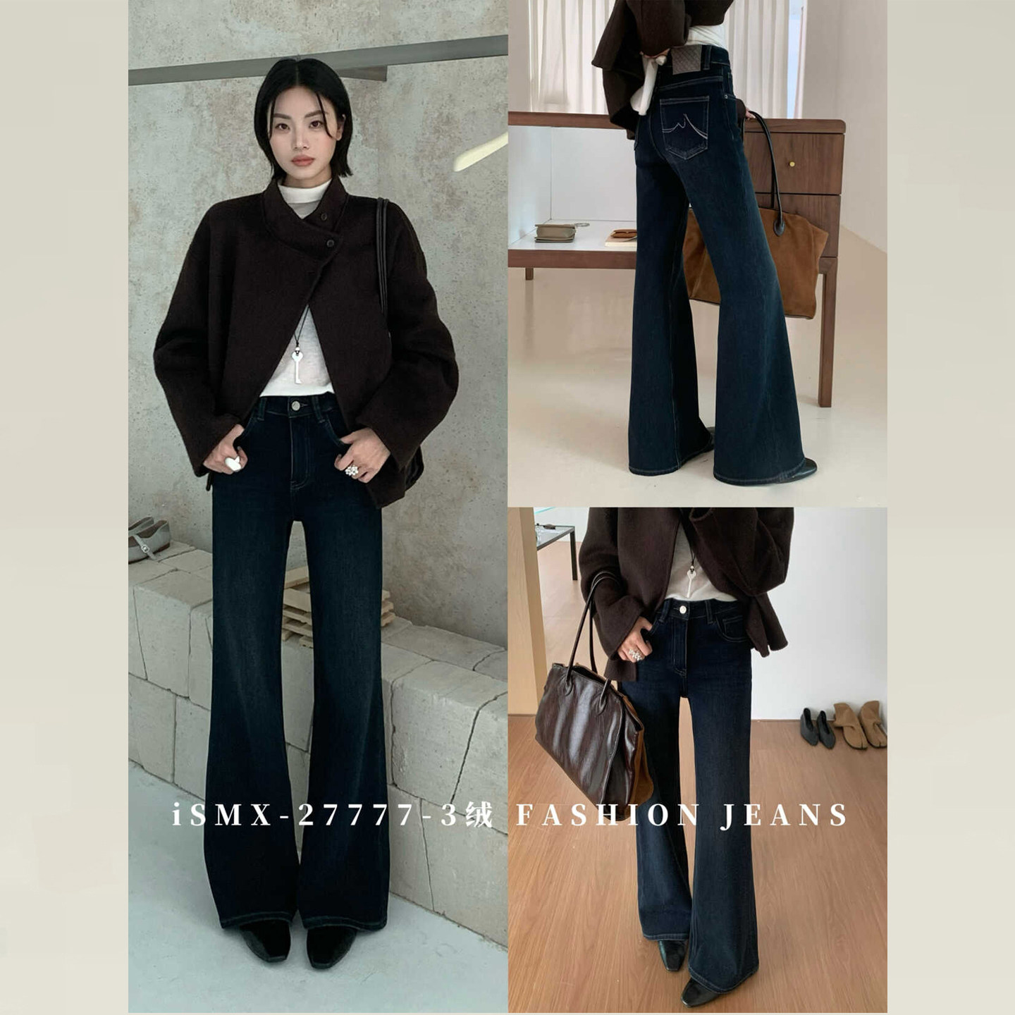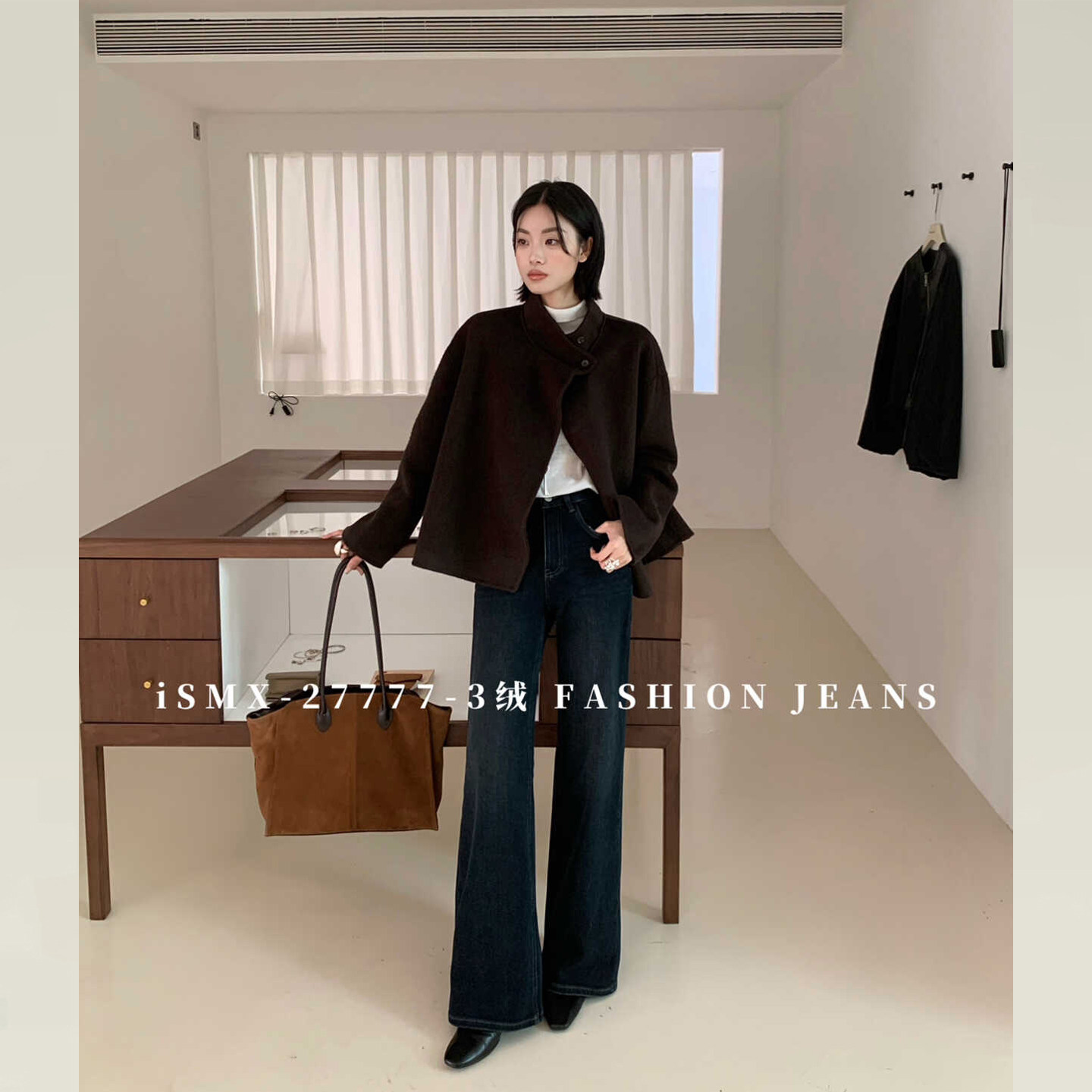 版 2025新款 型超好看 裤 ISMX黑色加绒微喇牛仔裤 子直筒喇叭裤 女款