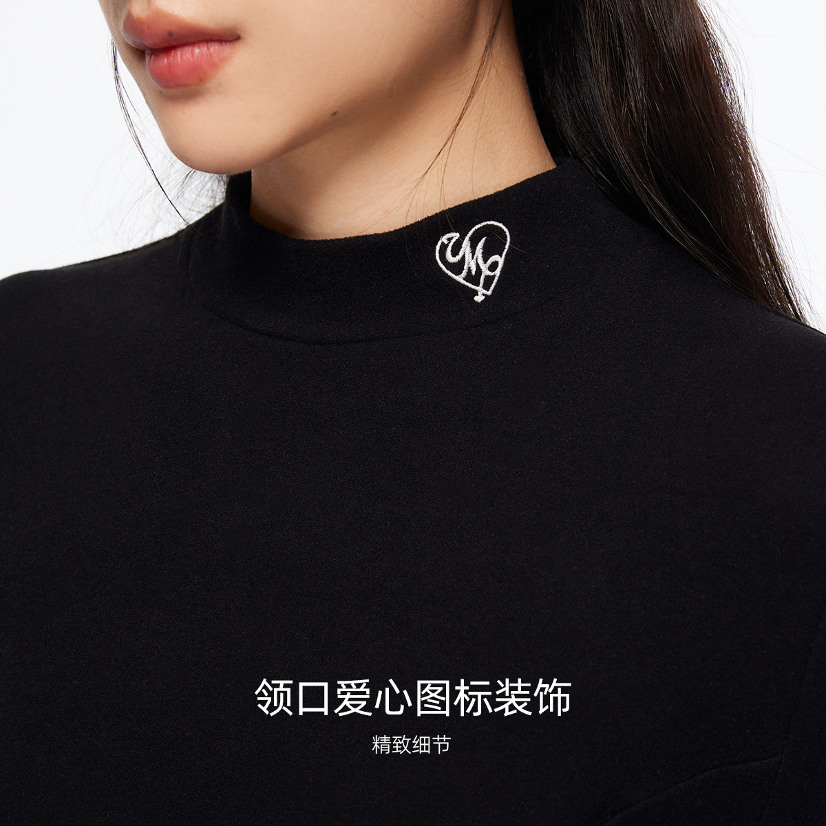 t恤上衣秋衣 女内搭白色长袖 秋冬季 精梳棉加厚磨毛中半高领打底衫